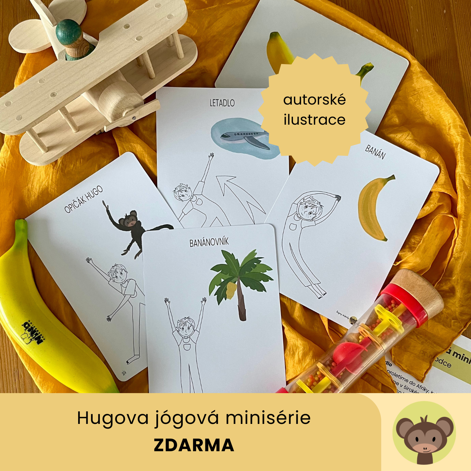 Opičák Hugo si pro vás připravil krátkou rychlou rozcvičku, při které se podíváme do jeho rodné Afriky a utrhneme si slaďoučký banán, který má moc rád.
