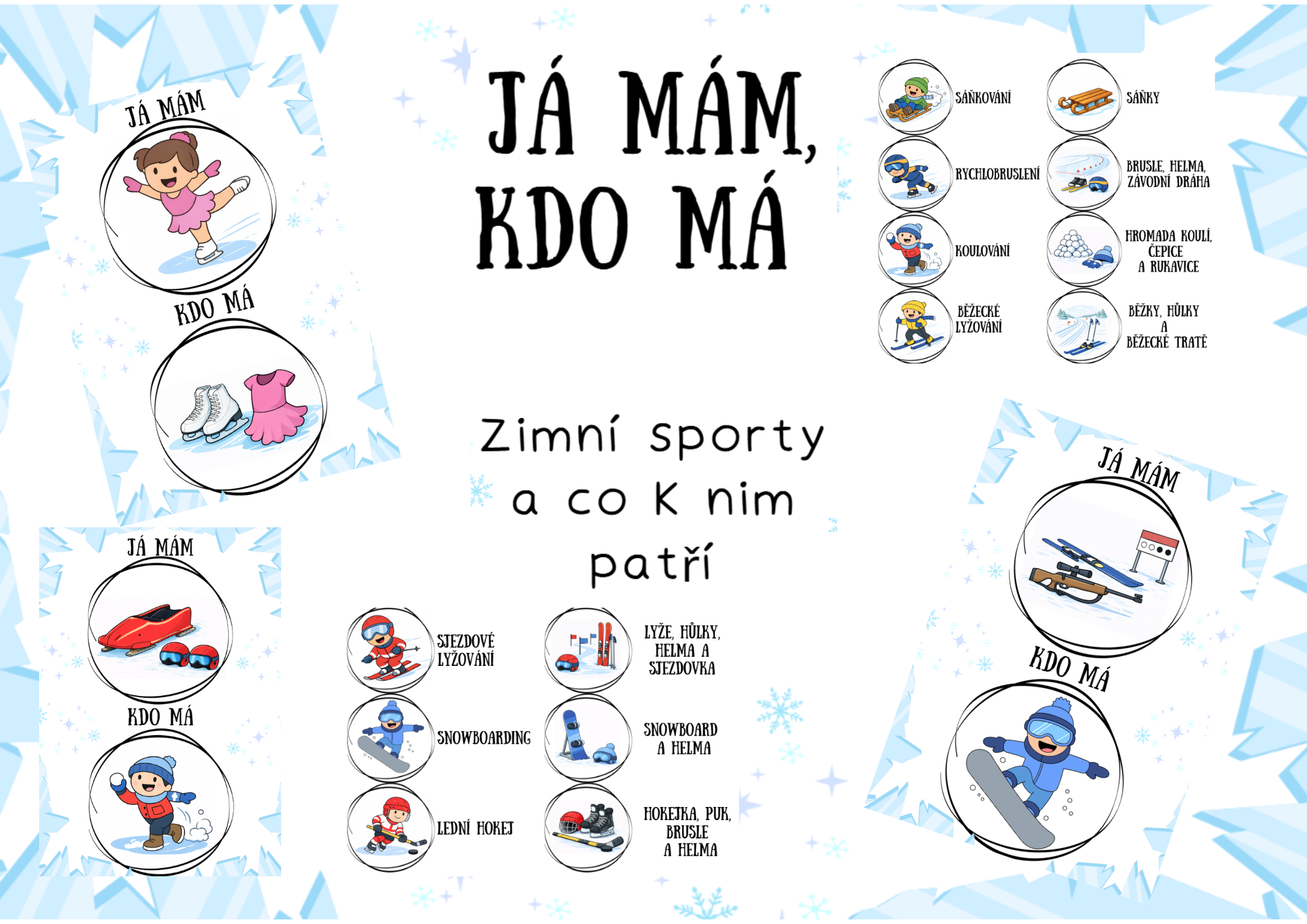 - Děti propojují sport a jeho vybavení, obrázek a název apod.