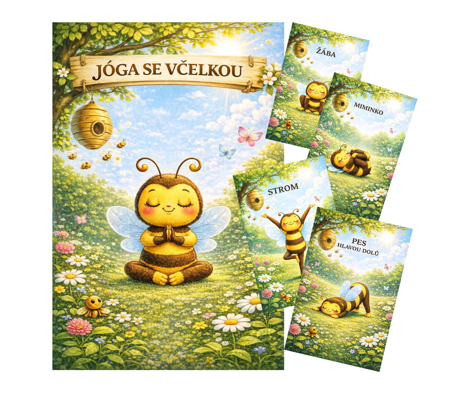 Jógové kartičky JÓGA SE VČELKOU slouží jako názorná pomůcka pro pohybové chvilky v mateřské škole. Díky obrázkům včelky v jednotlivých pozicích děti snadno pochopí, jak cvik vypadá, a s radostí se zapojují do cvičení.