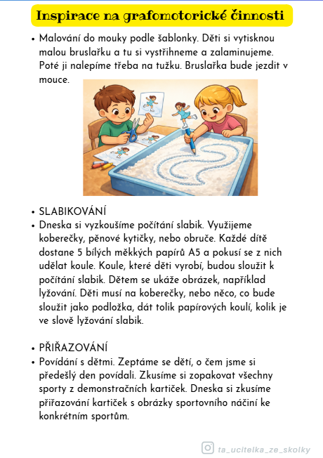 - malé kartičky pro učitelku (taková berlička, tahák)