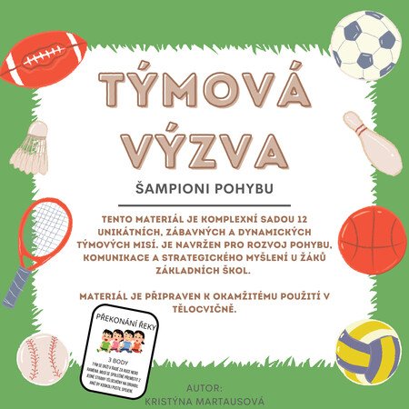 🚀 TÝMOVÁ VÝZVA: ŠAMPIONI POHYBU – Otestujte tělo i mozek! 🧠💪Hledáte způsob, jak rozproudit energii a nastartovat spolupráci ve třídě? Přesně pro vás je tu náš nový komplexní materiál!