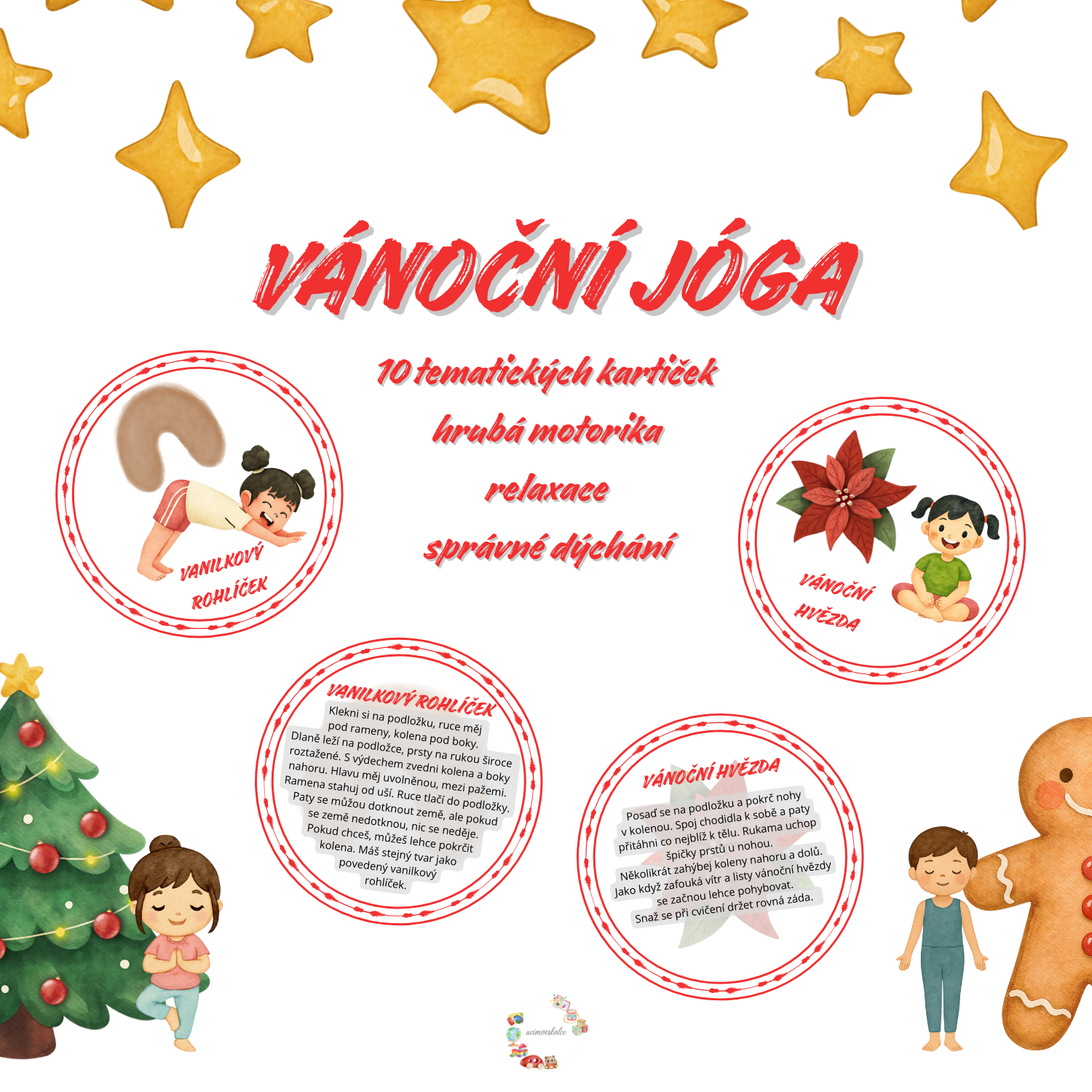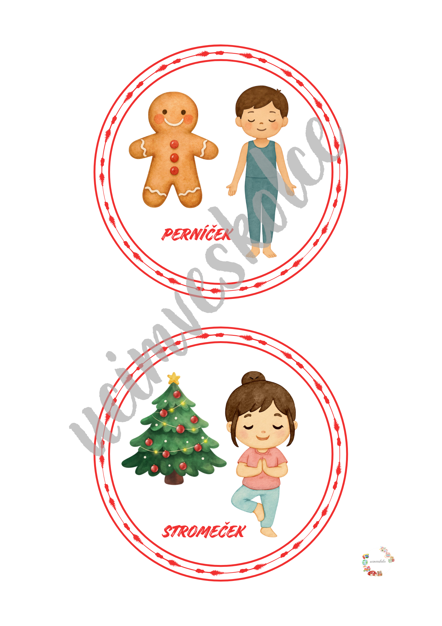 Soubor obsahuje 10 kruhových kartiček pro vánoční cvičení jógy.