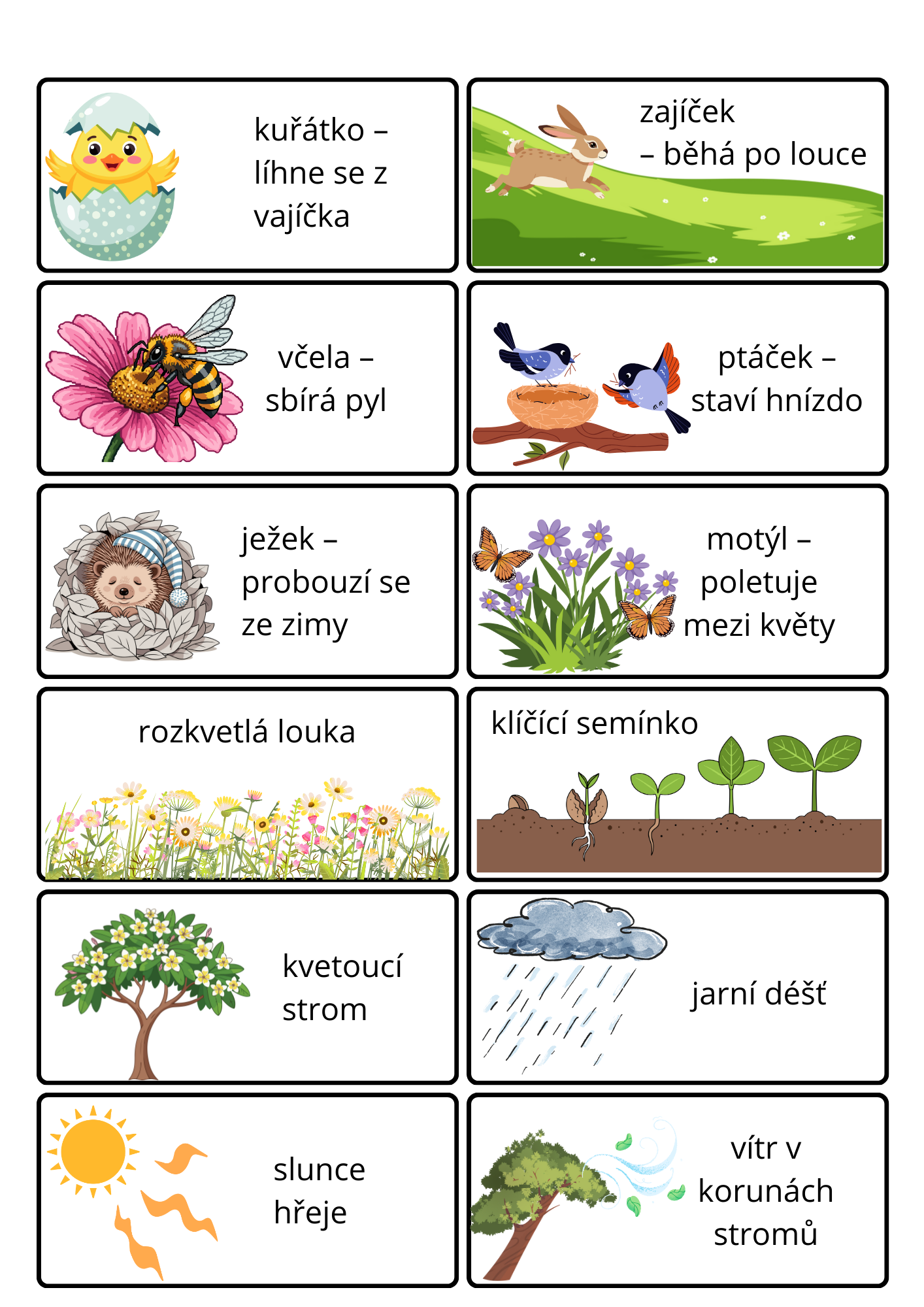 Materiál obsahuje tisknutelné kartičky v různých velikostech, aby si učitel mohl zvolit variantu podle věku dětí, prostoru a typu aktivity.