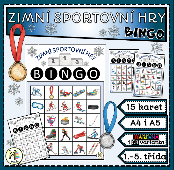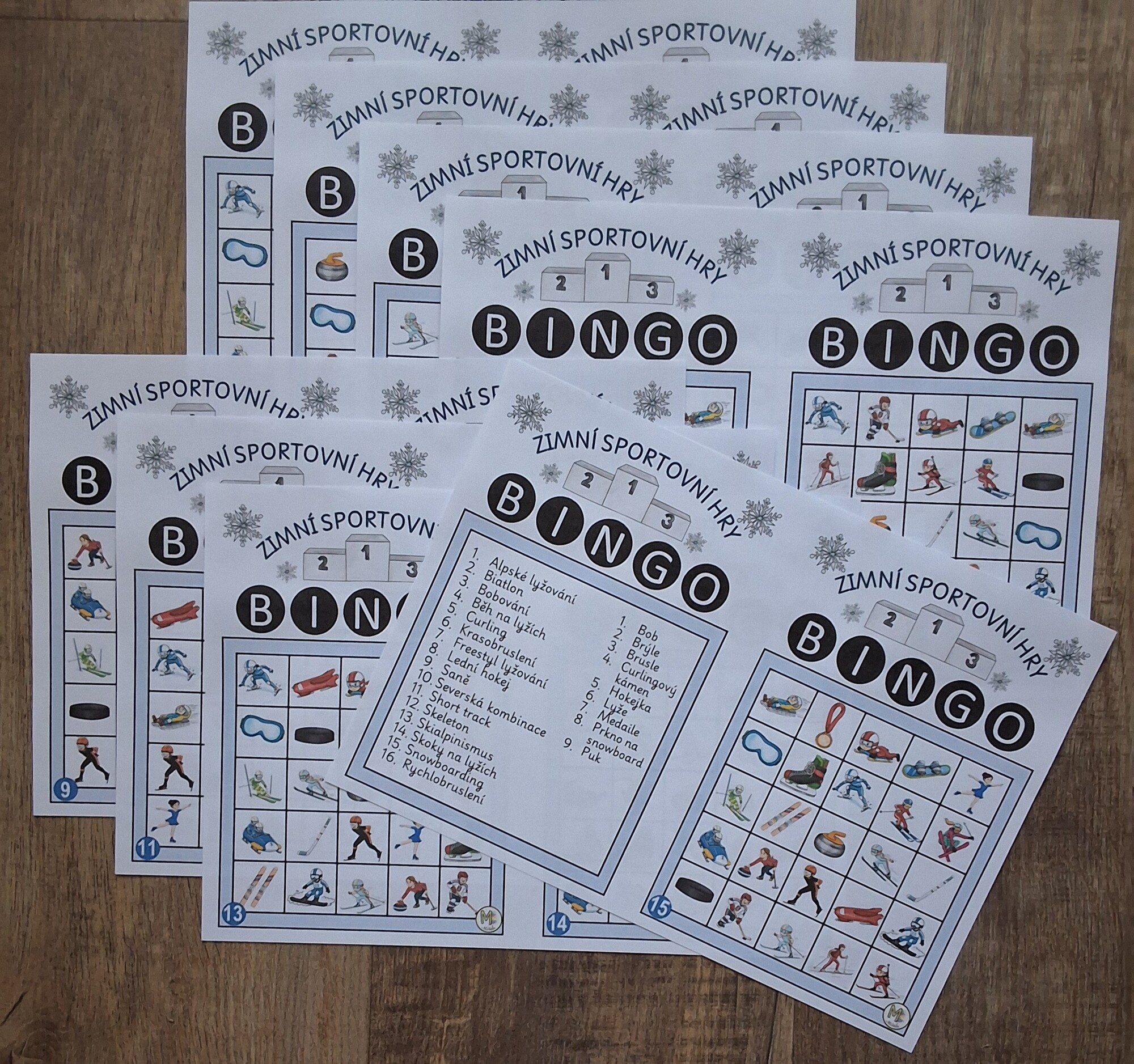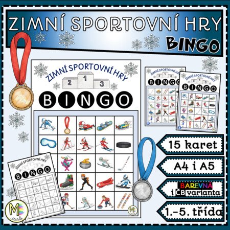 Bingo – Zimní sportovní hry je hravý vzdělávací materiál určený pro děti v mateřské škole (5–6 let) a na 1. stupni základní školy (1.–5. třída), který propojuje zábavnou hru s rozvojem důležitých výukových dovedností. Skvěle se hodí do výuky, družin, klubů, kroužků i pro domácí vzdělávání, zejména v období zimních sportovních her a zimní sezóny.