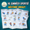Součástí je omalovánkové LEPORELO (sada 16 sportů) – na jedné straně jsou sportovní kartičky s ilustrací a názvem, na druhé straně krátké popisy a řádky, kam si děti u všech 16 sportů dopíší svého favorita – jméno známého sportovce, který se danému sportu věnuje. Nechybí ani nástěnné obrazy/karty ve verzi černobílé i barevné.