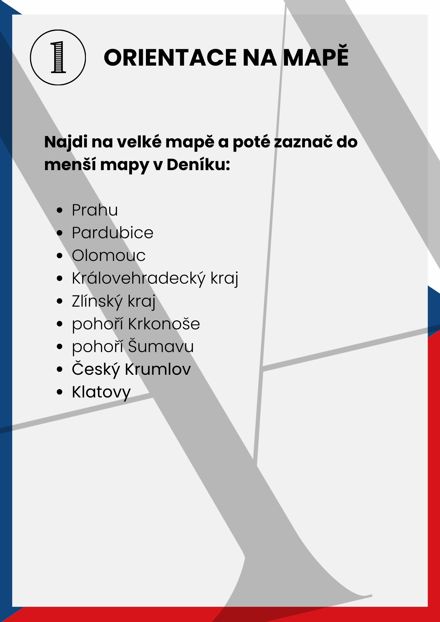 - orientaci na mapě České republiky,