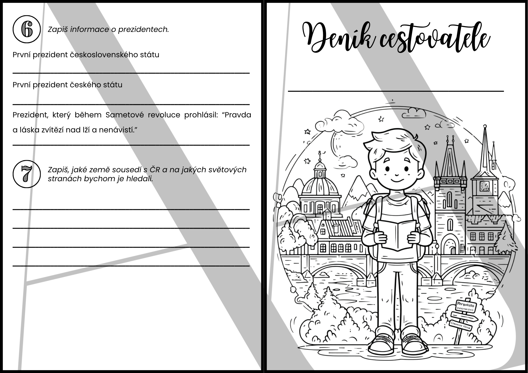 - Vytištěný Deník cestovatele / Deník cestovatelky (pro každého žáka)