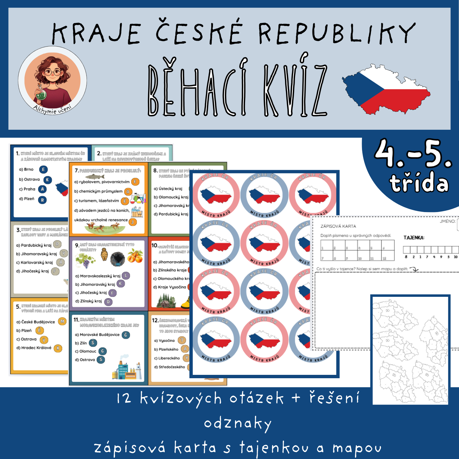 Zábavné opakování učiva o krajích České republiky, které rozhýbe celou třídu! Díky běhacímu kvízu si žáci nenásilnou a hravou formou procvičí znalosti z vlastivědy :-).