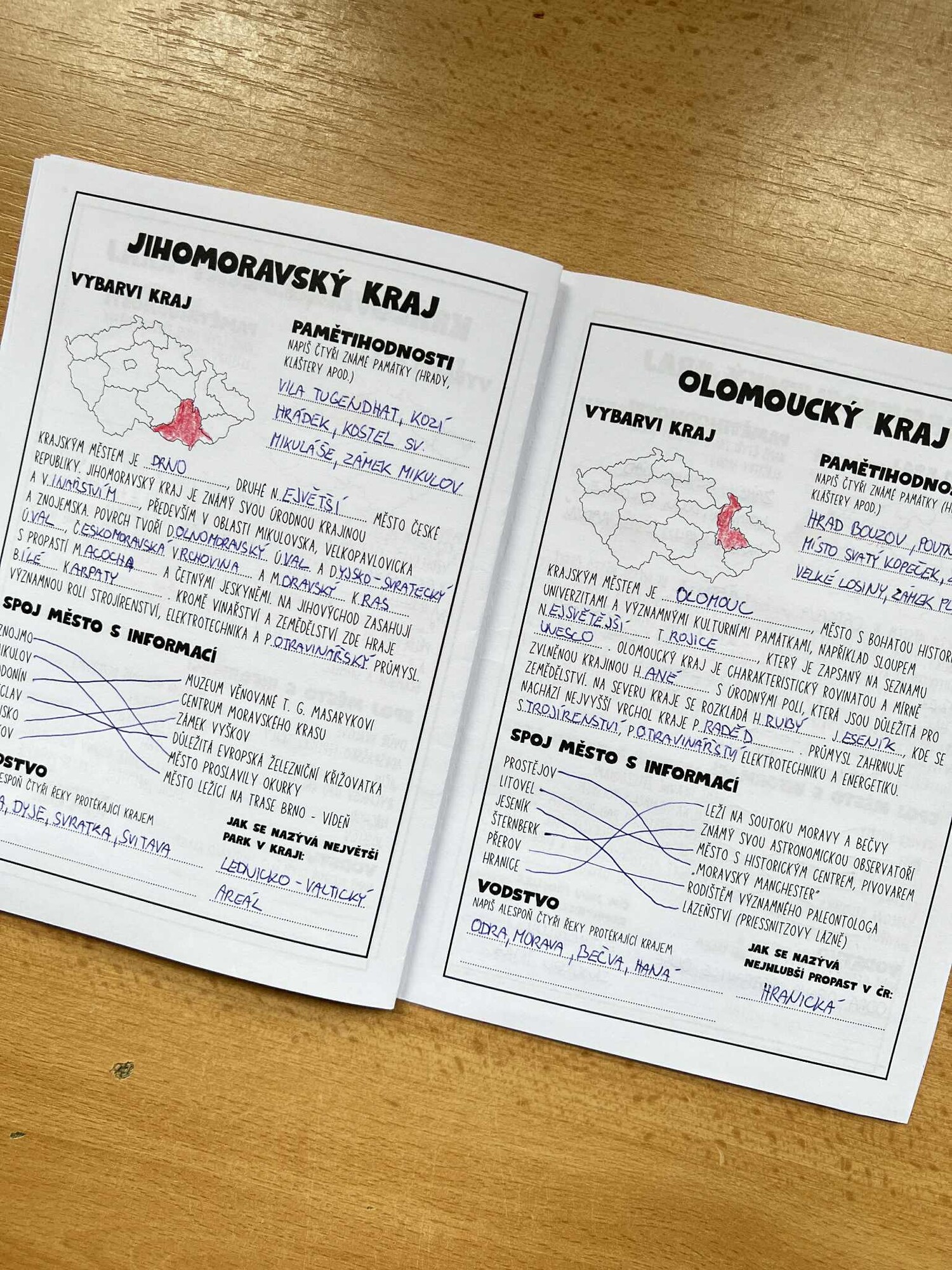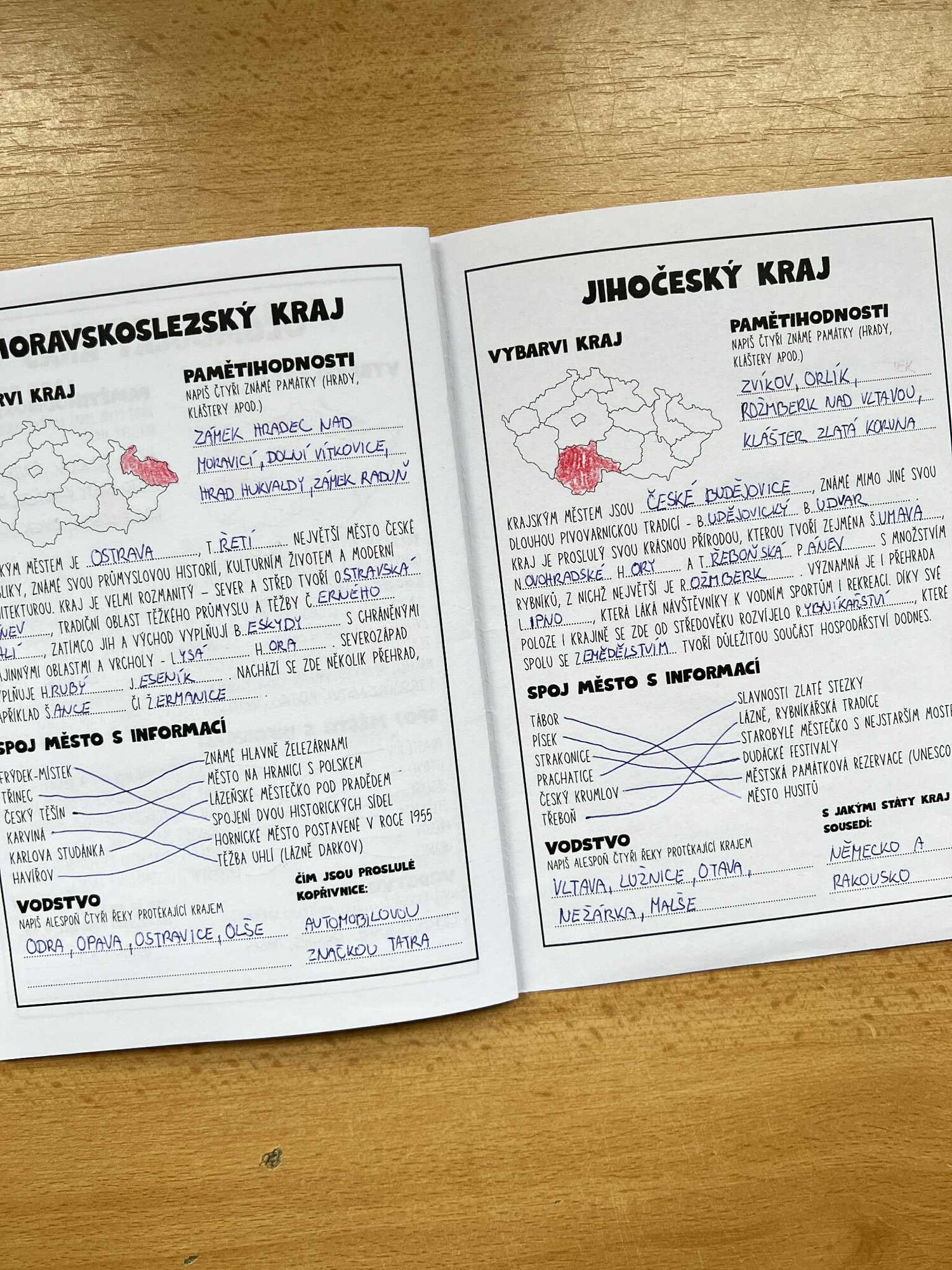 Pracovní listy jsou zaměřeny na prohloubení znalostí o jednotlivých krajích ČR. Úkolem žáků je vyhledat potřebné informace v učebnici nebo na internetu a doplnit je do pracovních listů.