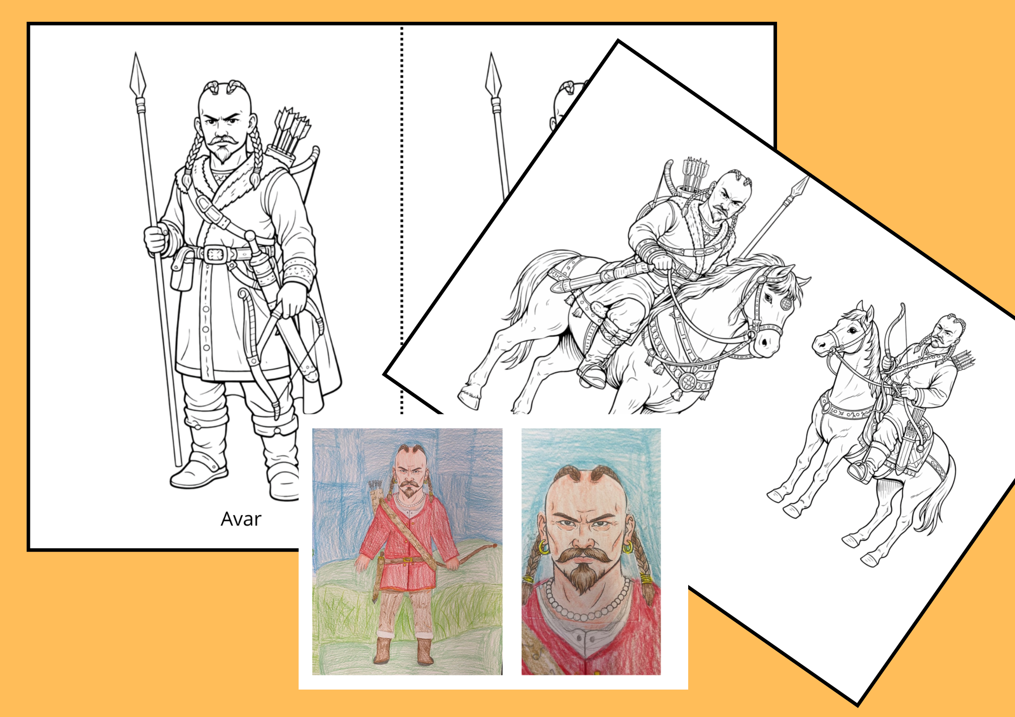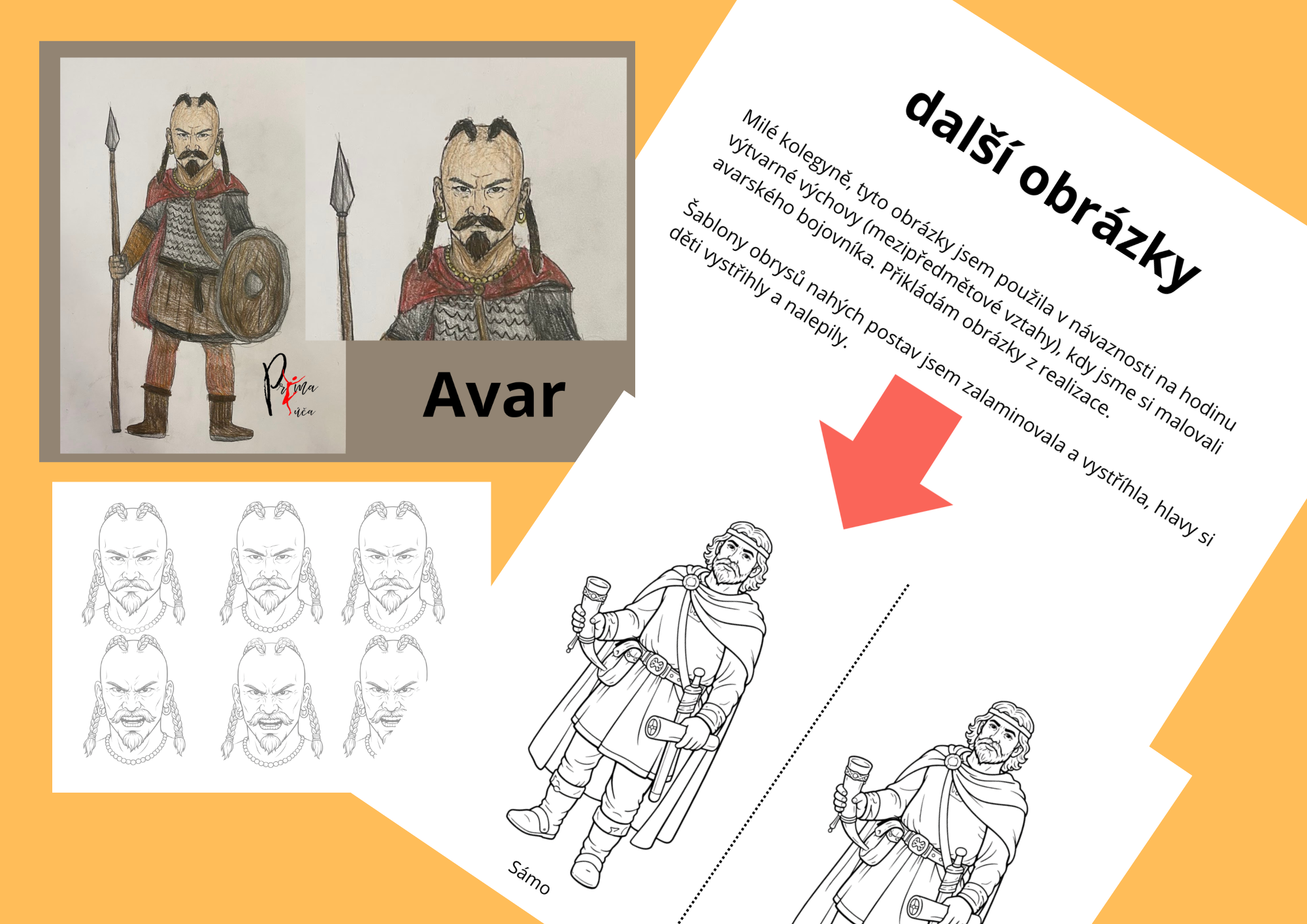 Součástí materiálu jsou také šablony postav a hlavy avarského bojovníka, které lze využít při výtvarné činnosti. Jak je uvedeno v materiálu, šablony byly použity pro vytvoření postavy, kdy žáci vystřihli hlavy a nalepili je na čtvrtku, obrys těla obtáhli tužkou a domalovali oblečení, čímž vznikla vlastní ilustrace historické postavy.