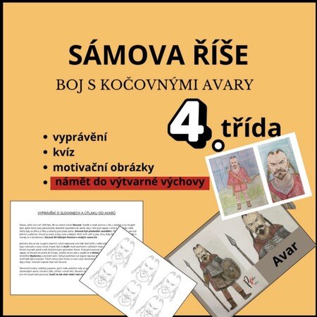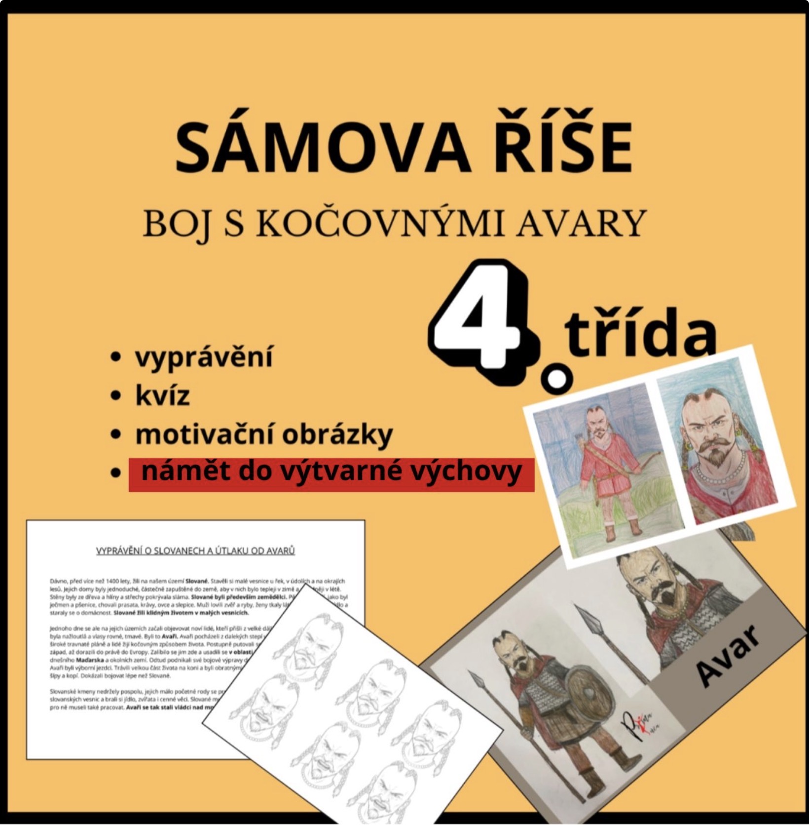 Materiál seznamuje žáky s obdobím příchodu Avarů na území Slovanů, jejich způsobem života a vznikem Sámovy říše. Obsahuje vyprávění, kvíz, obrazový materiál a výtvarné šablony postav. Text je přizpůsoben věku žáků mladšího školního věku a umožňuje rozvoj historické představivosti, porozumění příčinám konfliktů a významu spolupráce mezi lidmi.