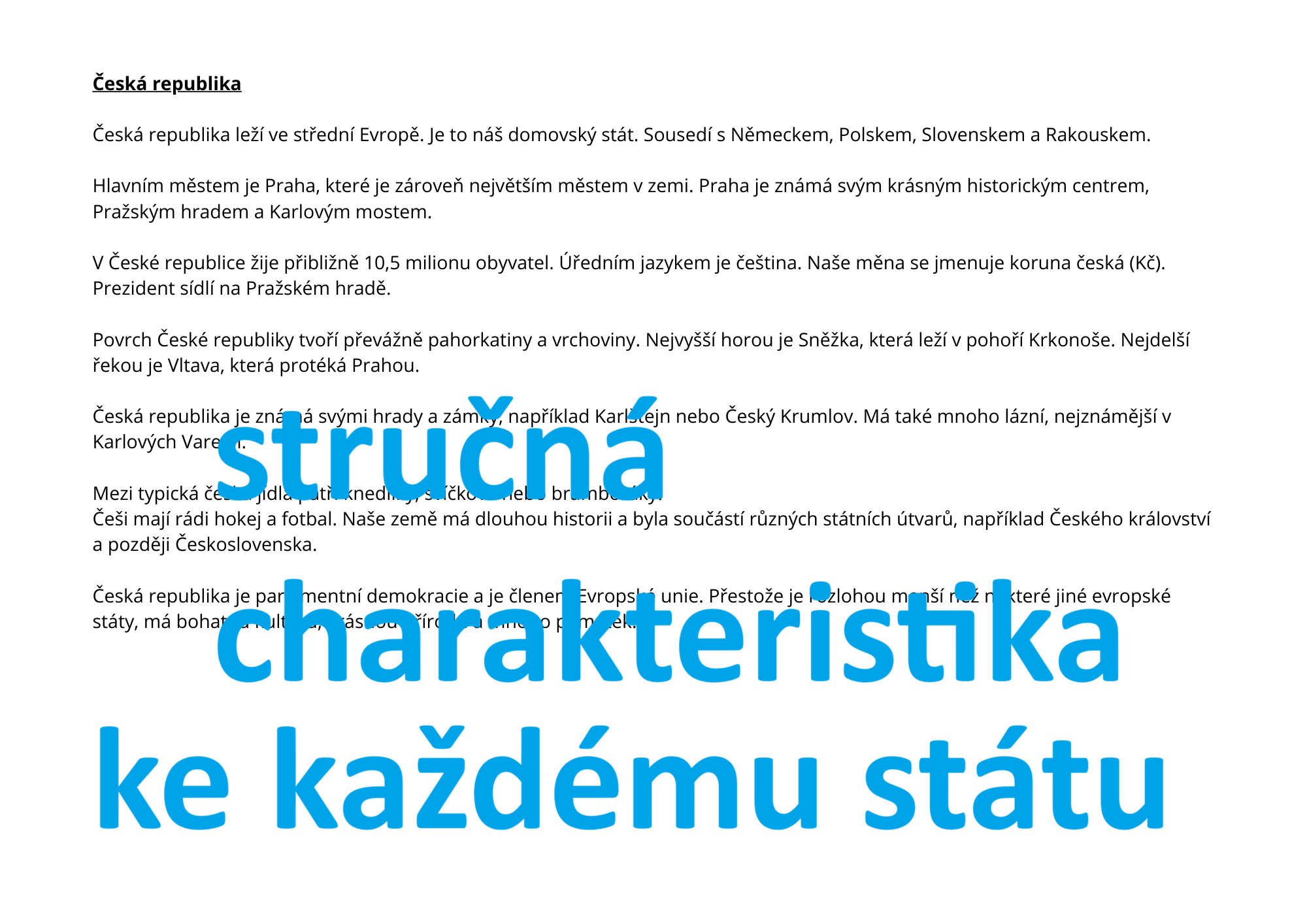 Tak jsem si mapy namalovala. Děti velmi baví zakreslování a informace si pak lépe pamatují. V materiálu je také ke každému státu stručná charakteristika.