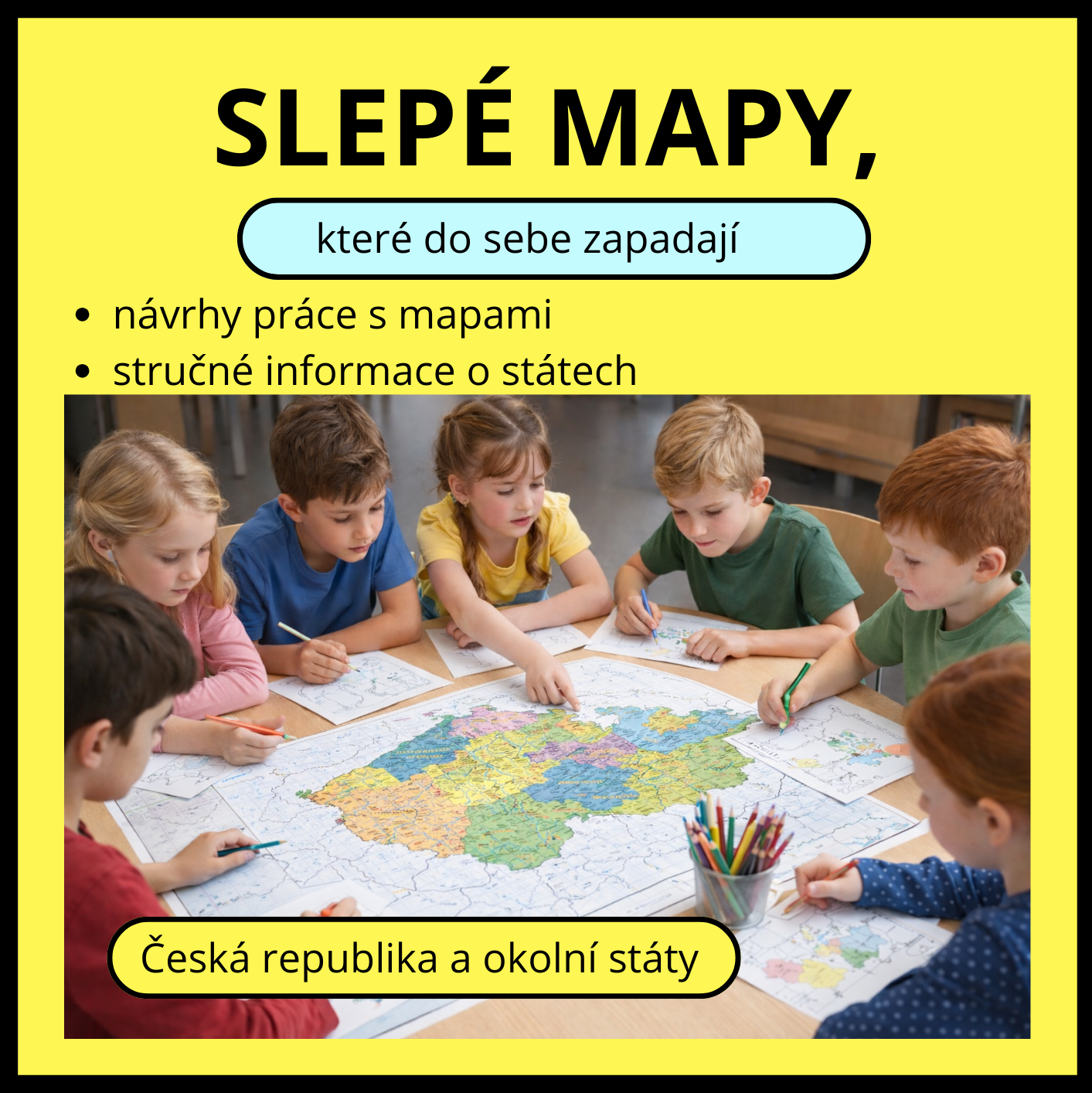 Děti mohou mapy také vlepovat do svých sešitů, mapy se také hodí do různých projektů a skupinových prací.