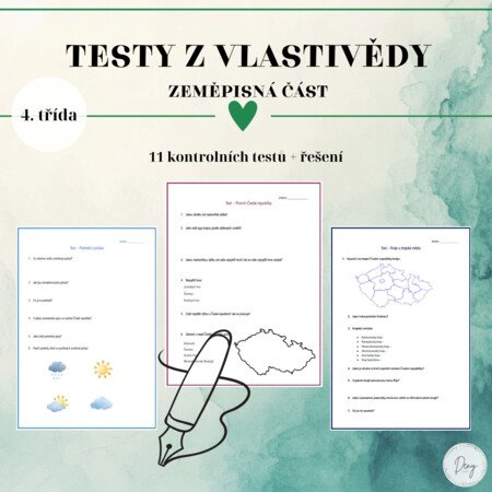 Soubor obsahuje 11 kontrolních testů. Témata: ČR, Život v demokratickém státě, Kraje, Nad mapou ČR, Orientace v krajině, Povrch ČR, Vodstvo ČR, Podnebí a počasí, Půda a zeměděl. ČR, Nerostné bohatství a průmysl, Ochrana přírody.