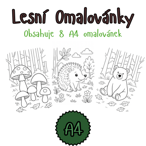 Zábavné omalovánky s lesní tematikou, které děti zavedou mezi stromy, zvířátka a přírodu.