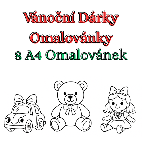 Omalovánky s vánočními dárky přinášejí jednoduché obrázky hraček a zimních radostí, které si děti mohou vybarvit podle sebe. Veselé, snadné a hravé motivy k období Vánoc.