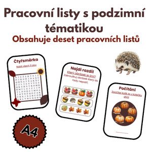 🍁 Podzimní pracovní listy – balíček 10 listů Objevte kouzlo podzimu s tímto balíčkem 10 pracovních listů plných