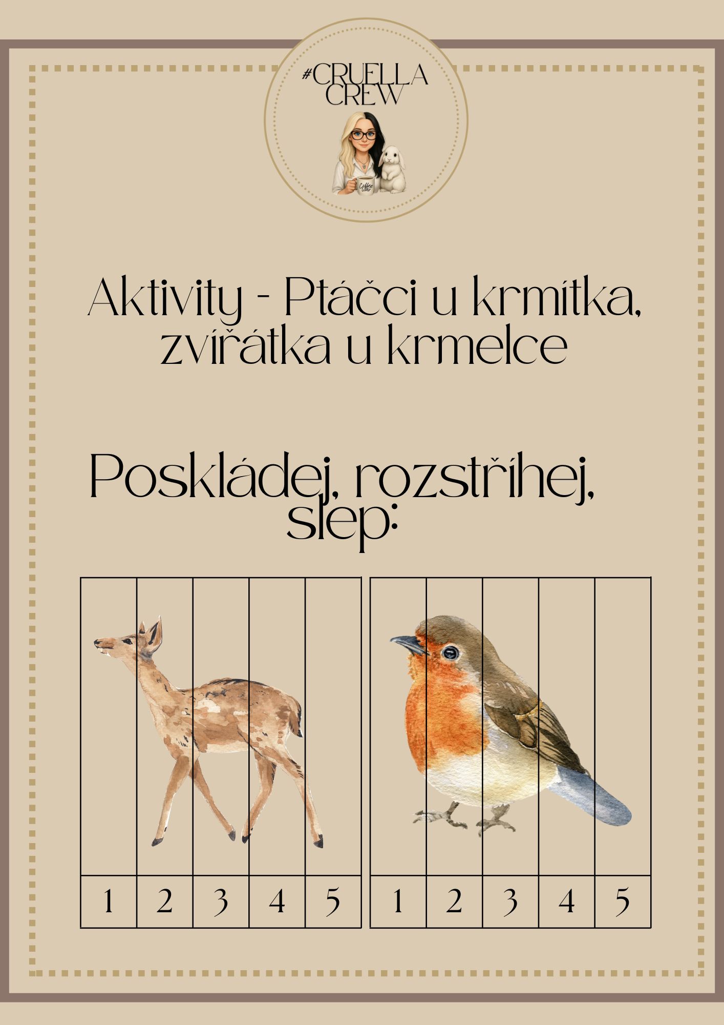 - Rozstříhej, poskládej: obrázky vytiskneme, zalaminujeme a rozstříháme. Úkolem dětí je složit obrázek tak, aby z jednotlivých dílů vznikl celistvý obrázek. Vodítkem může být číselná řada.