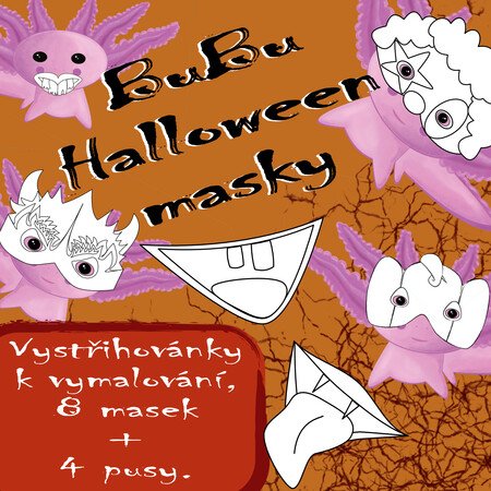 - 8 černobílých masek připravených k uchycení na gumičku,