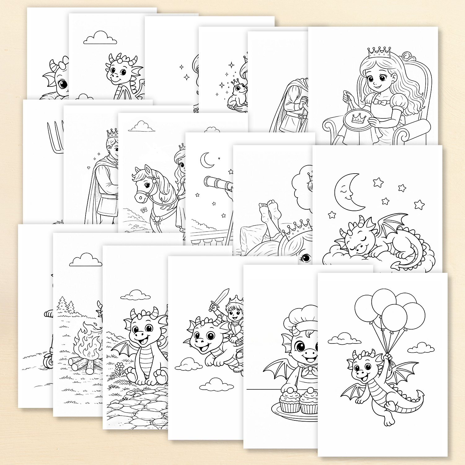 Jedinečná sada omalovánek s jedním roztomilým dráčkem a něžnou princeznou přináší dětem svět fantazie, laskavosti a kouzelných momentů.