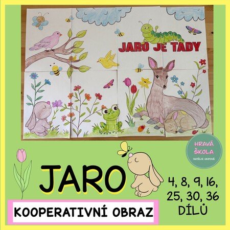 🖼️🖌️ Soubor obsahuje kooperativní obraz rozdělený na různé počty dílů podle počtu žáků ve třídě. Materiál propojuje tvořivou činnost, spolupráci dětí a tematickou výuku se zaměřením na JARO.🌷🌿