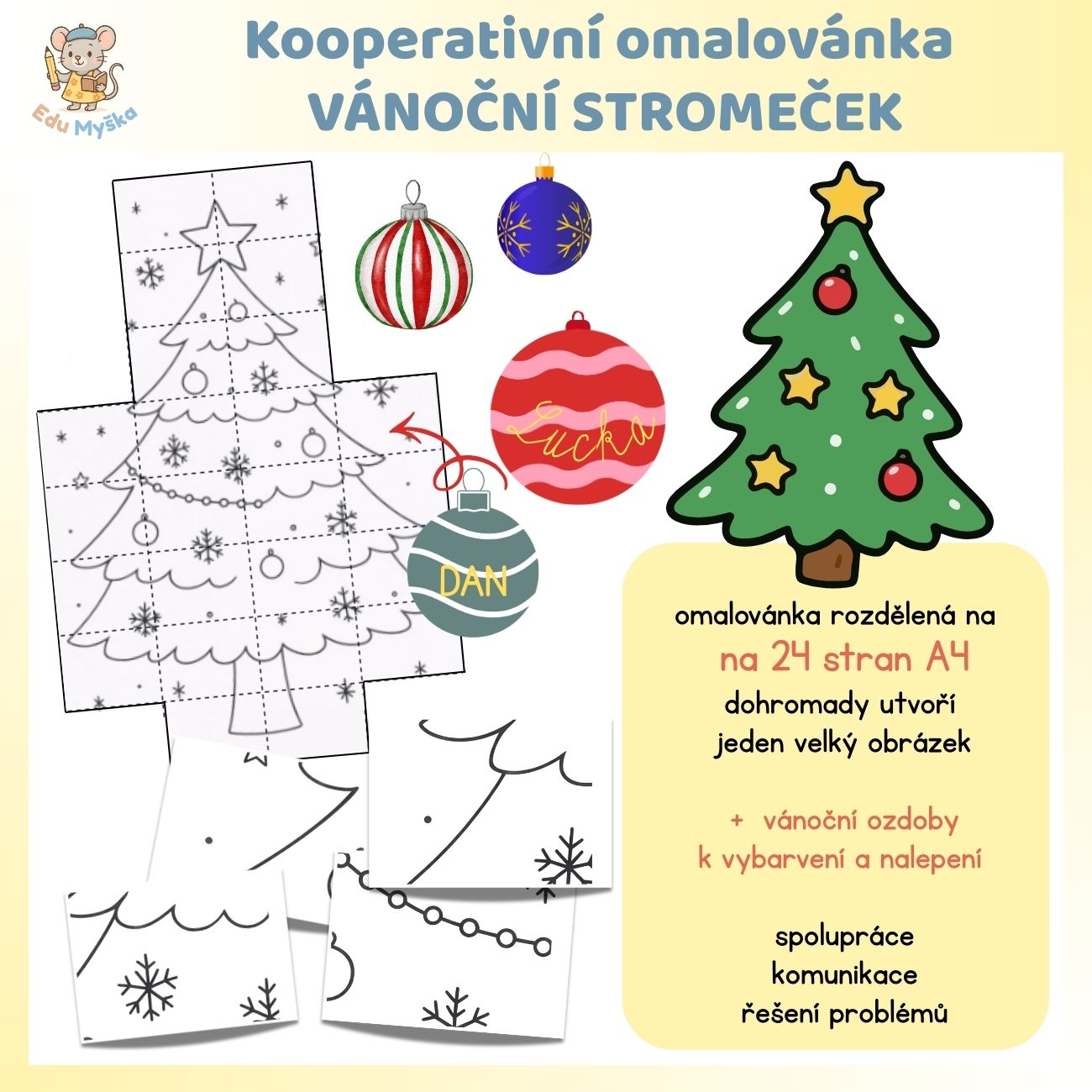 Kooperativní omalovánka je rozdělena na 24 listů určených k vytištění ve formátu A4.