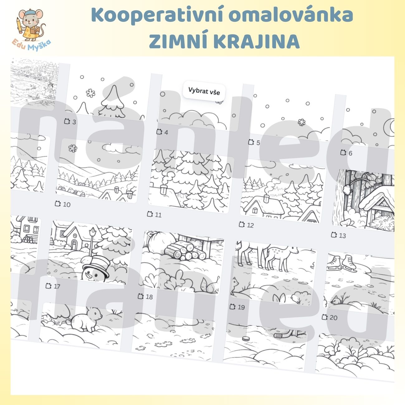 Kooperativní omalovánka je rozdělena na 25 listů určených k vytištění ve formátu A4.