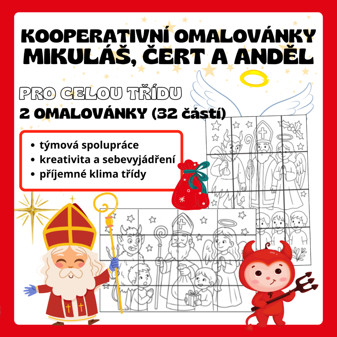 - 2 omalovánky po 16 částech - celkem 32 obrázků k vymalování