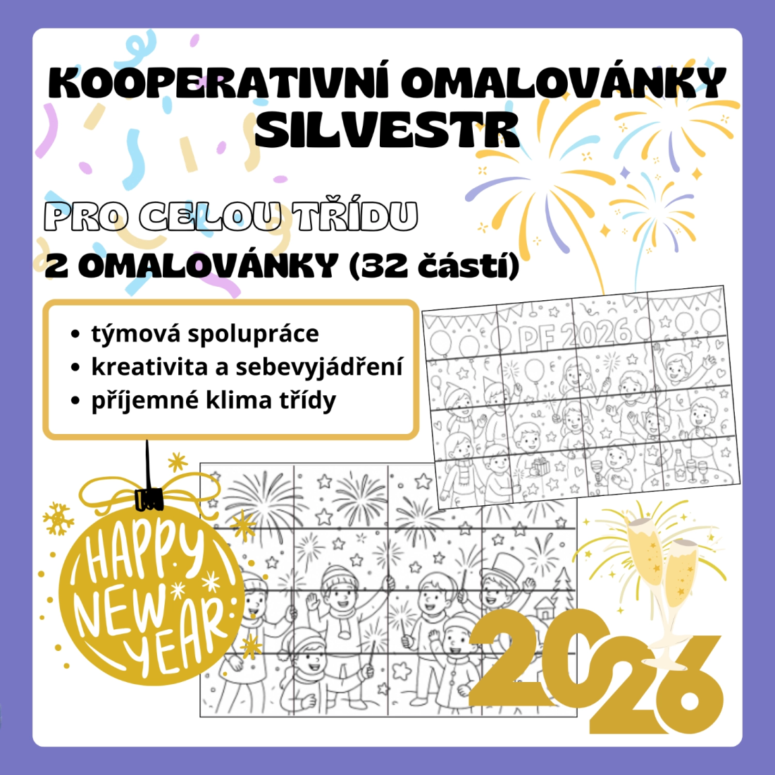 Kooperativní omalovánky podporují týmovou spolupráci, kreativitu, sebevyjádření a podpoří příjemnou atmosféru ve třídě. Vytvořte se žáky společné dílo a rozlučte se s rokem 2025!