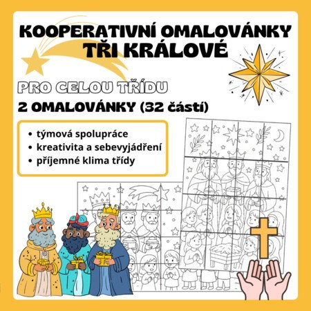 Kooperativní omalovánky podporují týmovou spolupráci, kreativitu, sebevyjádření a podpoří příjemnou atmosféru ve třídě. Vytvořte se žáky společné dílo.