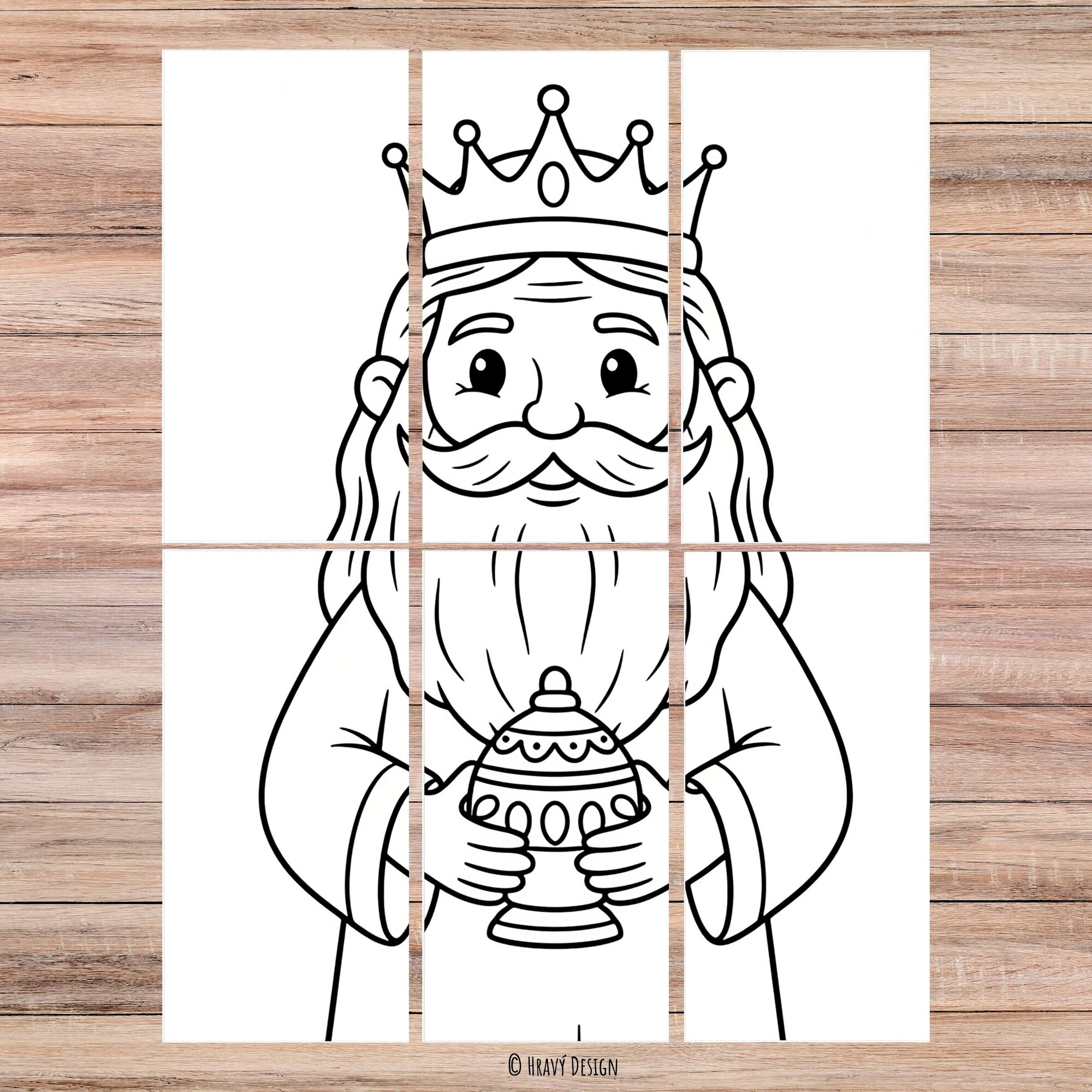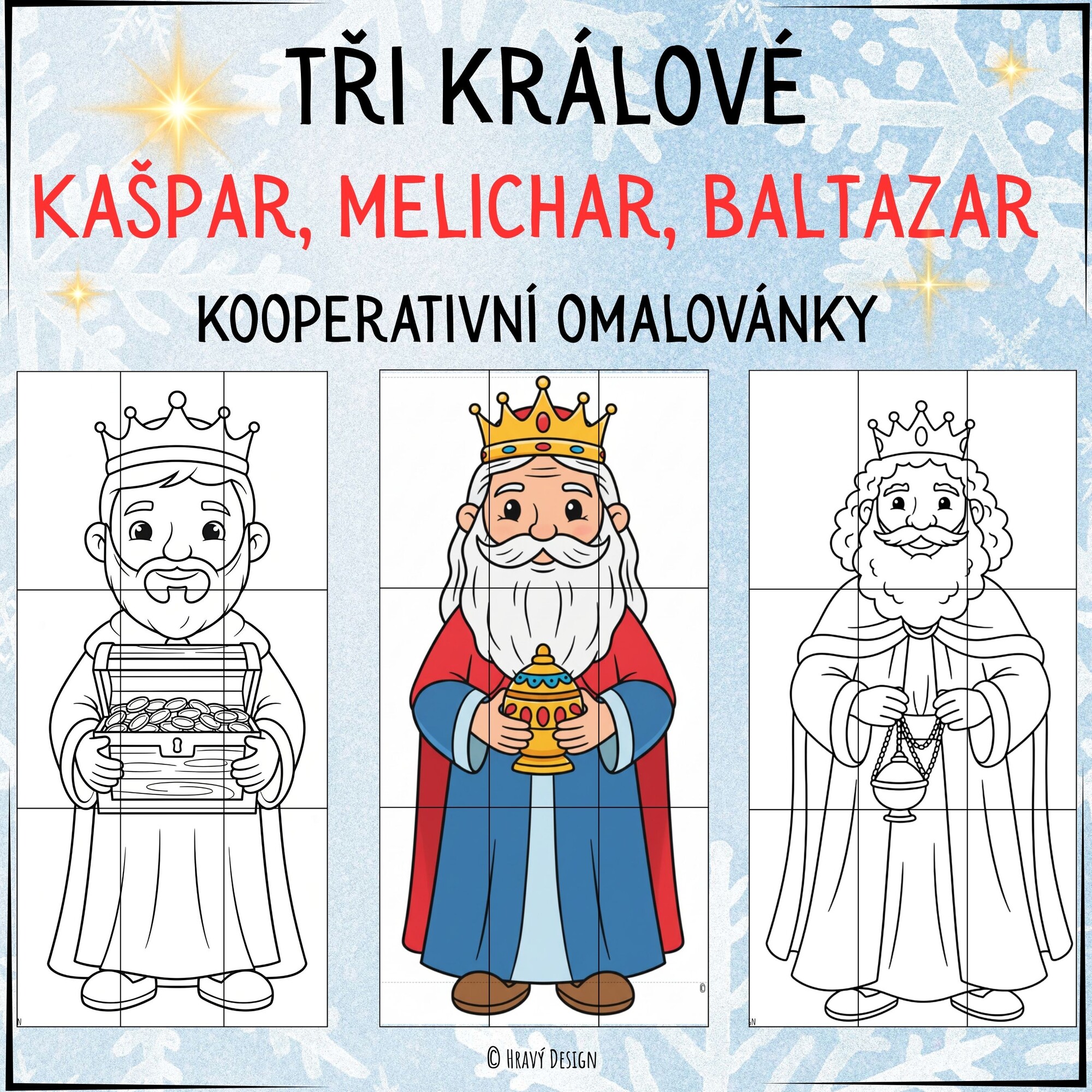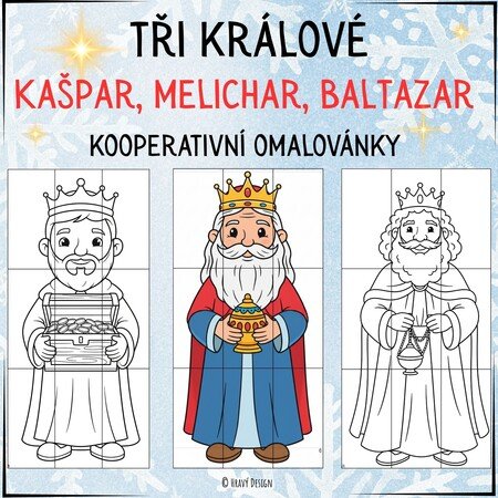 Soubor obsahuje tři velké obrázky – Kašpara, Melichara a Baltazara, které děti společně vybarví a poskládají.
