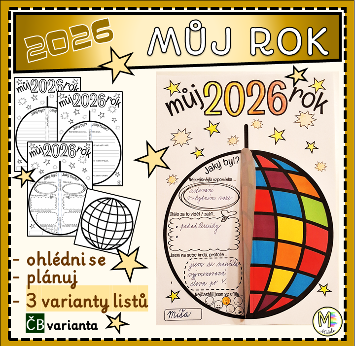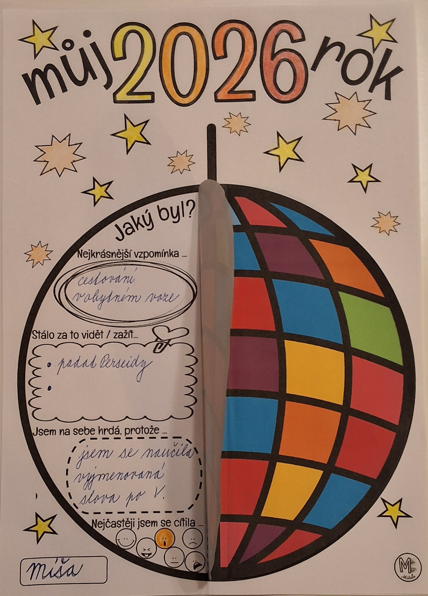 Materiál Můj rok 2026 je výukový pracovní materiál určený dětem 1.–9. ročníku základní školy. Nabízí smysluplný a citlivý prostor pro ohlédnutí za uplynulým rokem, pojmenování vlastních zážitků, pocitů a úspěchů a zároveň vede děti k plánování roku nadcházejícího. Podporuje sebereflexi, osobnostní rozvoj, práci s emocemi a uvědomění si vlastních přání a cílů.