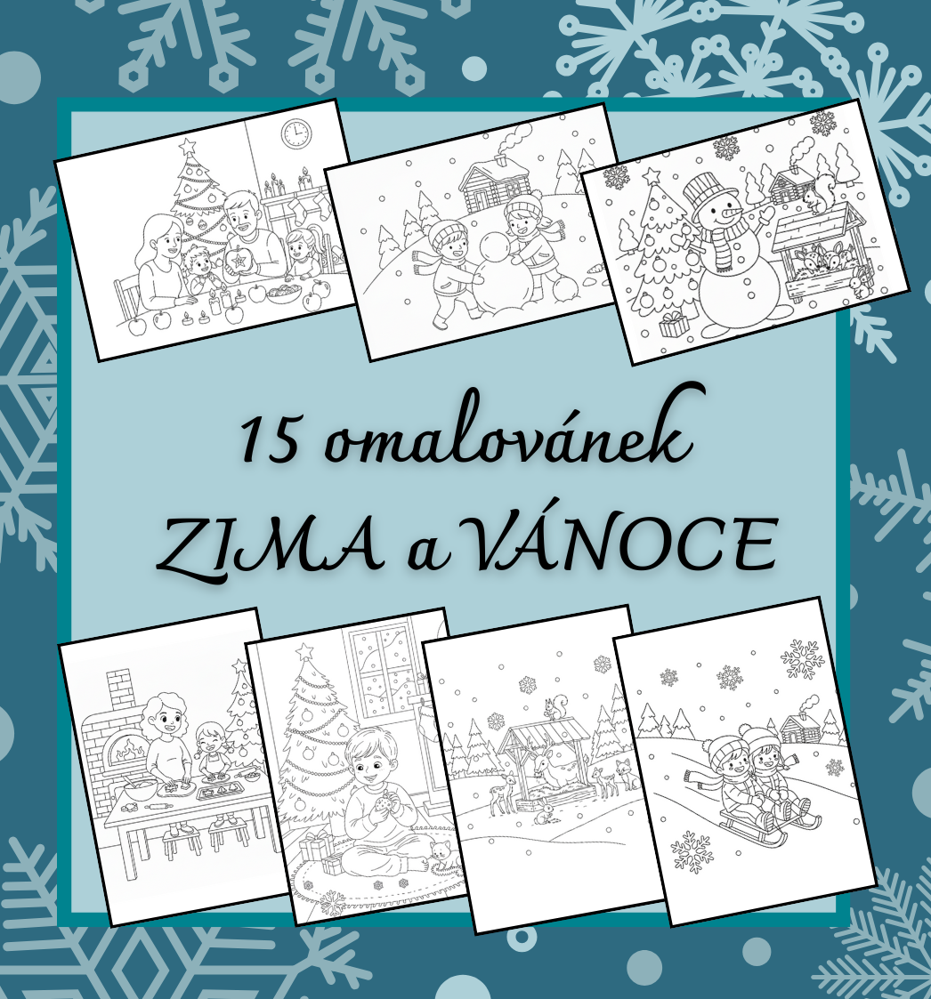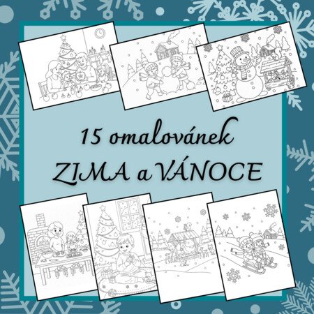 - 15 omalovánek (A4) se zaměřením na zimu a Vánoce (zimní aktivity, vánoční tradice apod.)