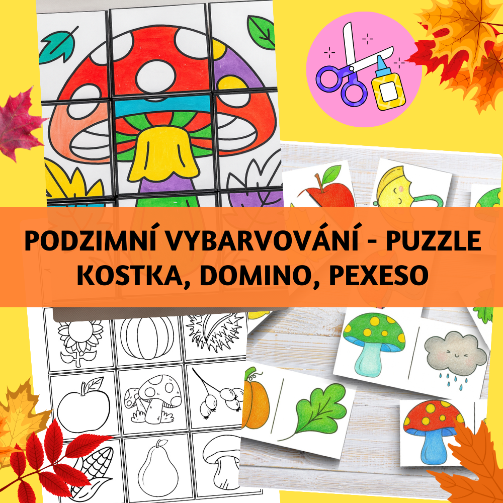 Podzimní vybarvování – puzzle kostka, pexeso a domino