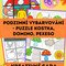 - Puzzle kostka – 9 kostek, ze kterých složíte 6 různých obrázků. Součástí jsou i obrázky s vyznačenými liniemi, aby děti lépe viděly, jak se celý obrázek skládá.
