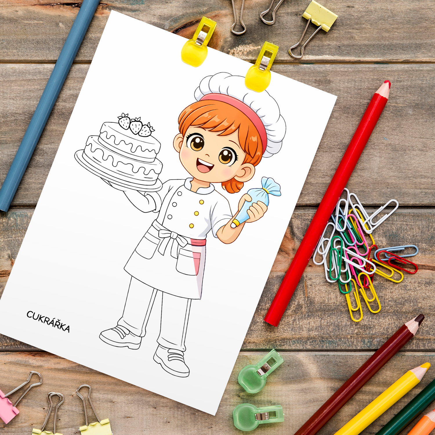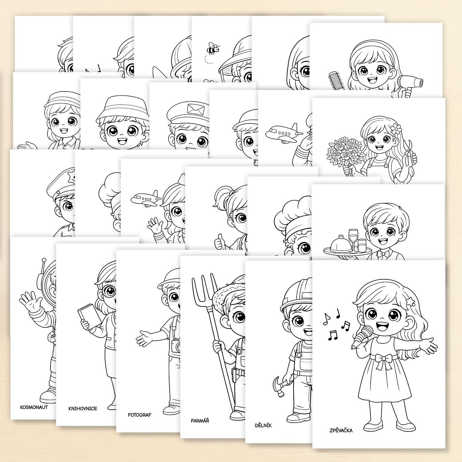 Omalovánky představují dětem svět práce hravou a srozumitelnou formou. Zachycují různá povolání, se kterými se mohou setkat v běžném životě – od gastronomie a služeb přes zdravotnictví až po technické a kreativní profese.