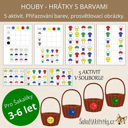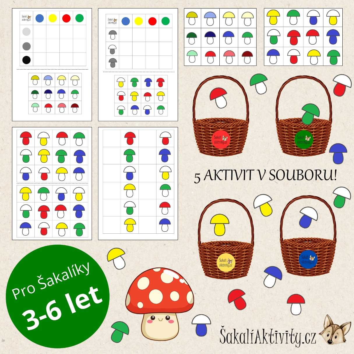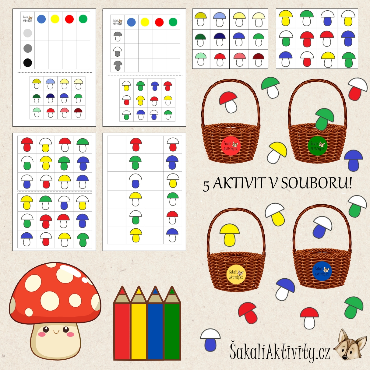 Soubor vzdělávacích aktivit na téma houby a barvy přináší dětem hravé učení a rozvoj dovedností. V jednom souboru najdete hned 5 různých aktivit, které lze využít opakovaně – ideální pro doma, do školky i do školy.