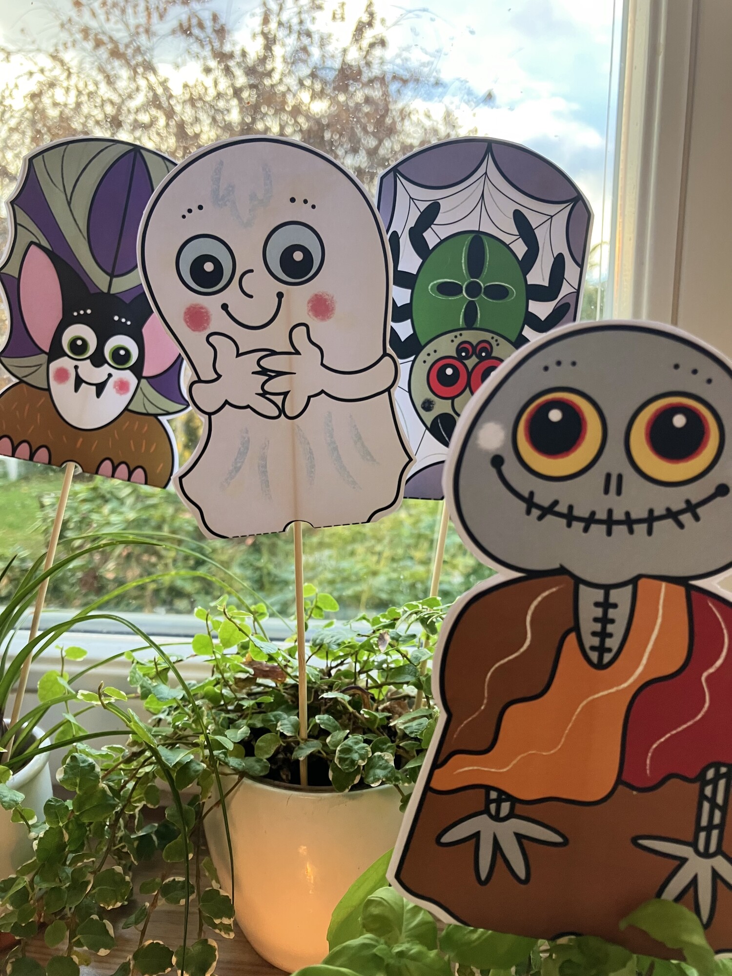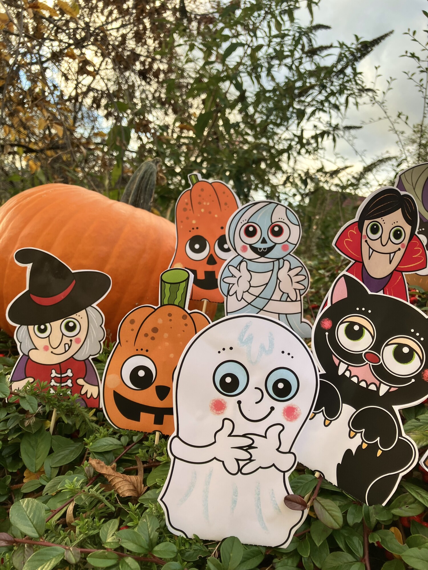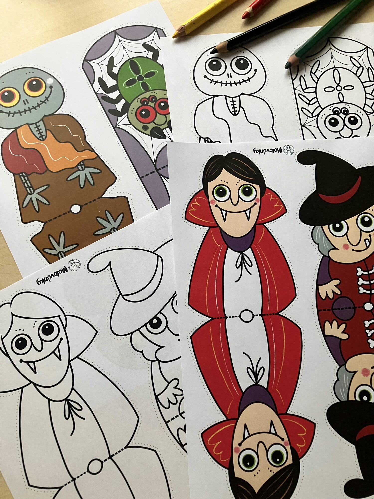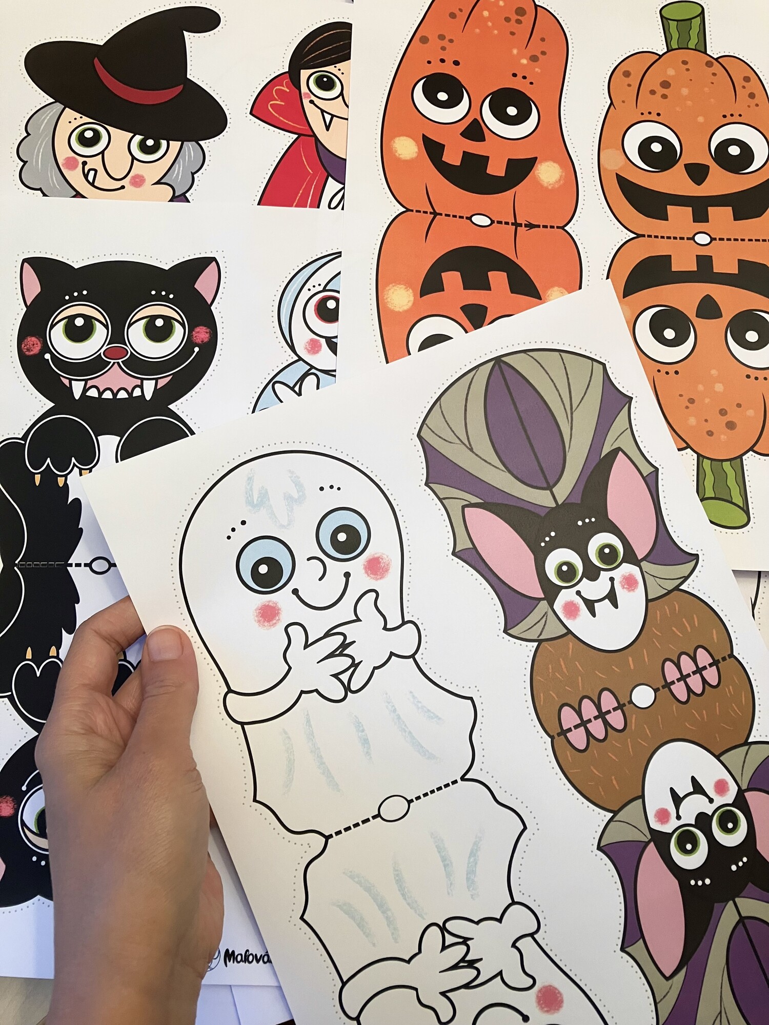 Obrázky jsou vhodné pro předškolní děti nebo nejmladší školáky. Děti si snadno vytvoří pěknou dekoraci k podzimní halloweenské výzdobě.