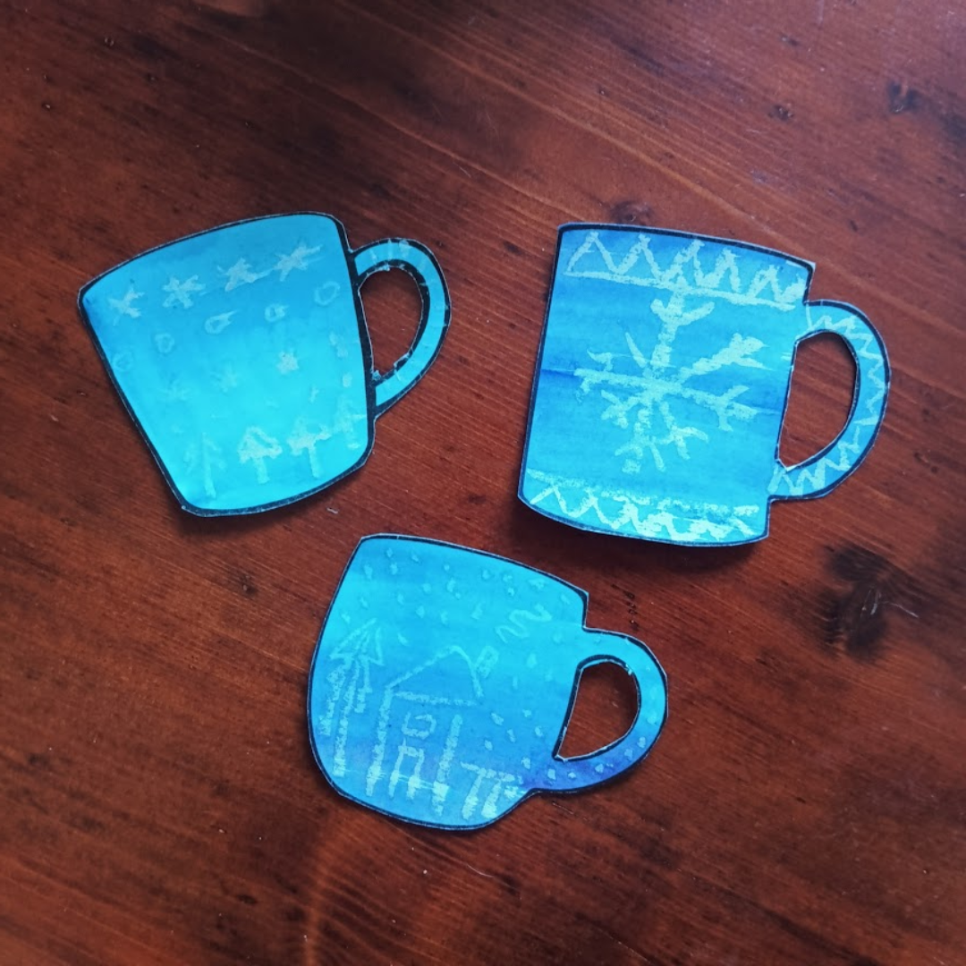 - Zimní hrnečky voskovkou a vodovkami