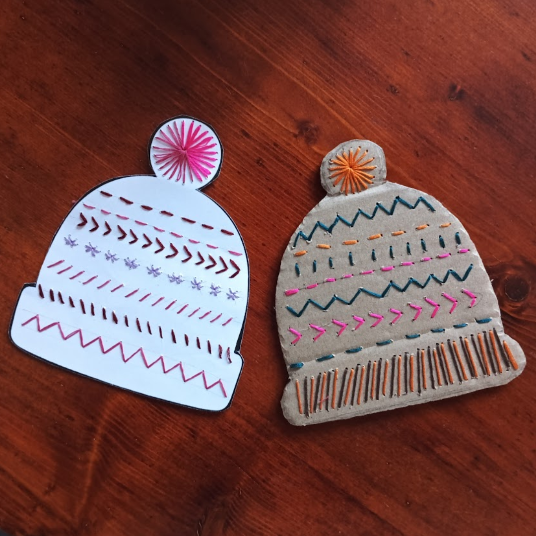 - Vyšívaná čepice z kartonu / čtvrtky