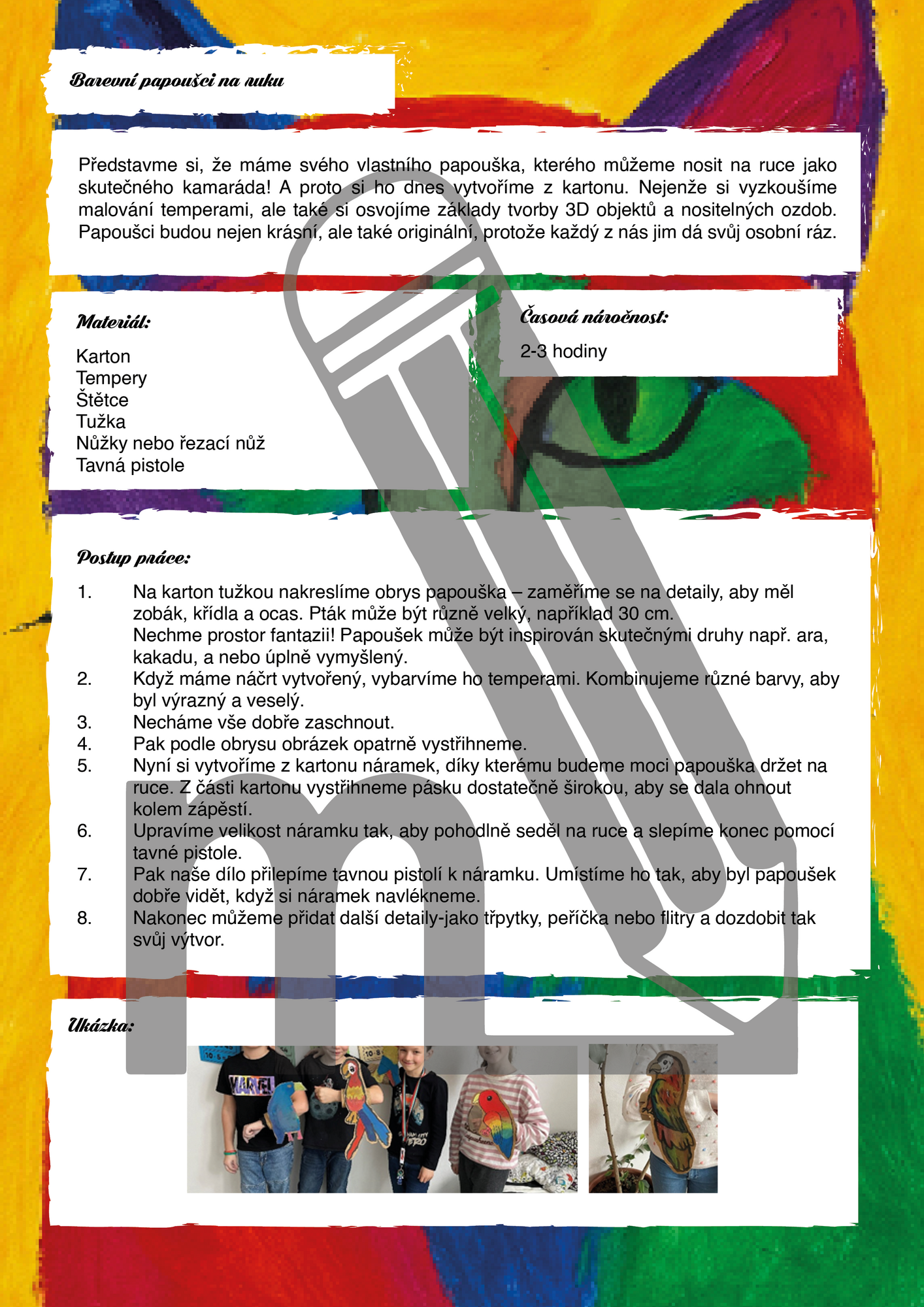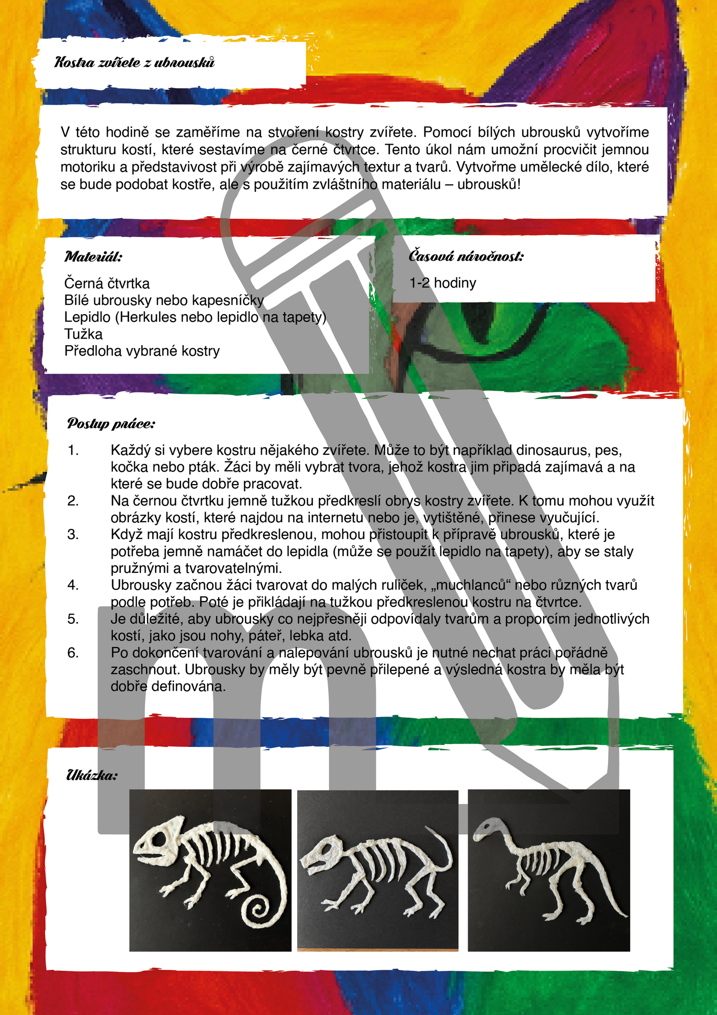 Každá aktivita je popsána krok za krokem a doplněna seznamem pomůcek, časovou náročností a obrazovými ukázkami žákovských prací.