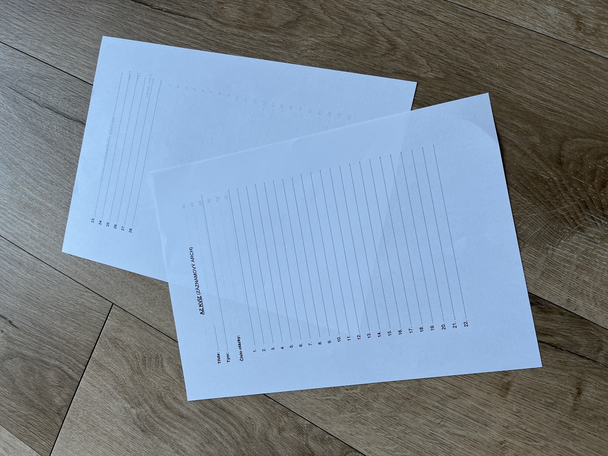 - záznamový arch pro žáky
