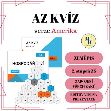 Materiál slouží k zopakování informací o státech a regionech Ameriky formou zábavné hry AZ kvíz, která je modifikovaná tak, aby byli zapojeni všichni žáci najednou.