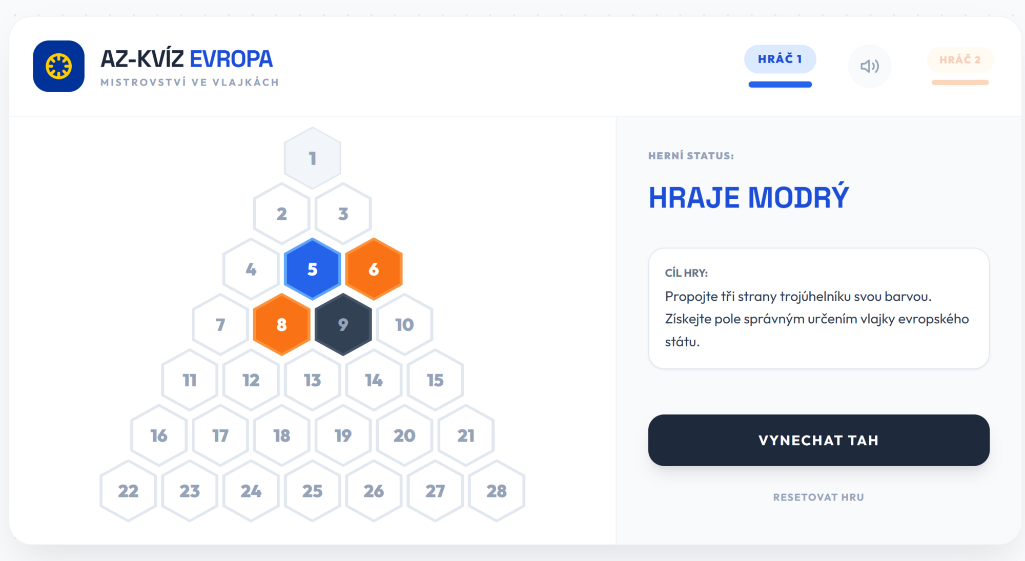 Oživte výuku zeměpisu nebo vlastivědy napínavou soutěží! Tato digitální hra typu AZ-kvíz kombinuje znalosti o evropských vlajkách se strategickým uvažováním. Žáci proti sobě soupeří jako modrý a oranžový tým s cílem propojit tři strany trojúhelníkového pole.