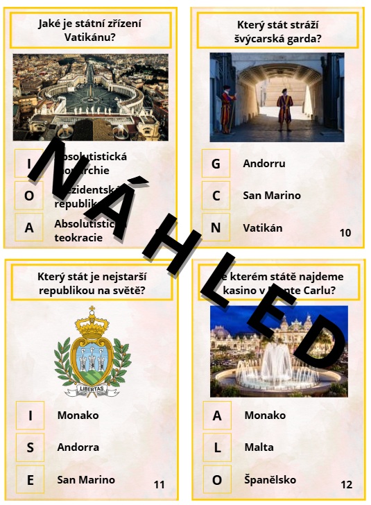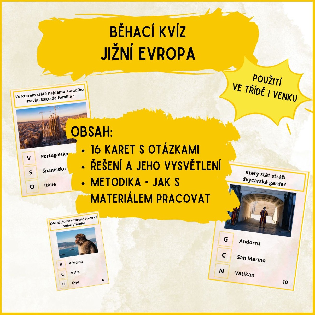 Tento běhací kvíz je součástí mé ucelené řady materiálů, které pokrývají celý evropský kontinent. V mém portfoliu najdete ve stejném stylu zpracované i další regiony Evropy.