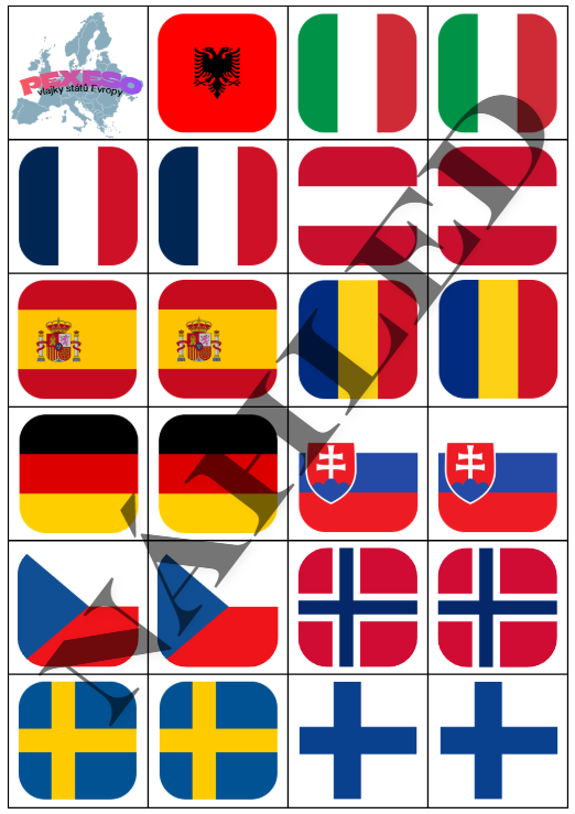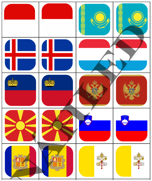 😍Pexeso obsahuje 46 dvojic vlajek těchto evropských států: