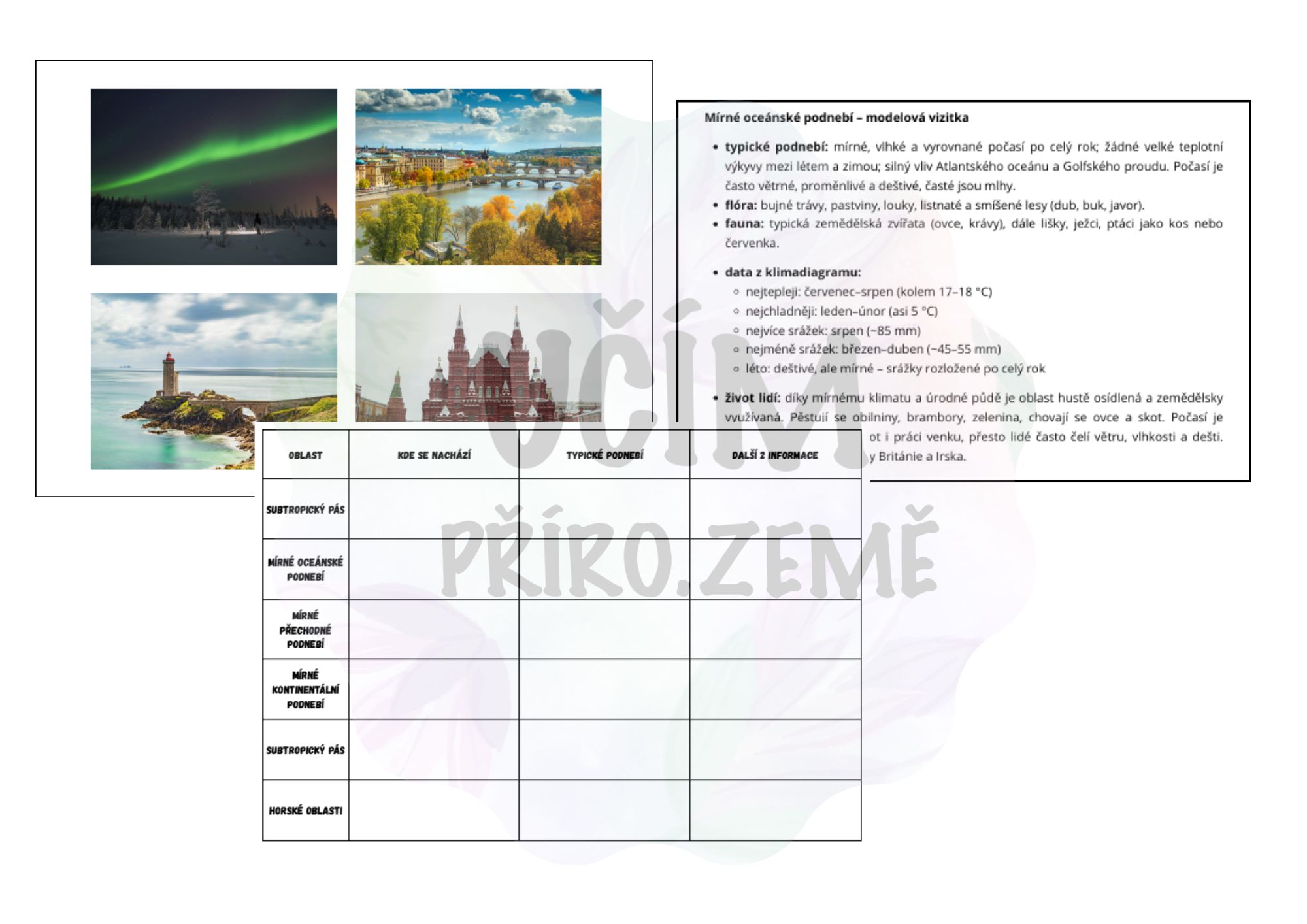 - karty s texty a klimadiagramy k jednotlivým podnebným pásům (6 listů)