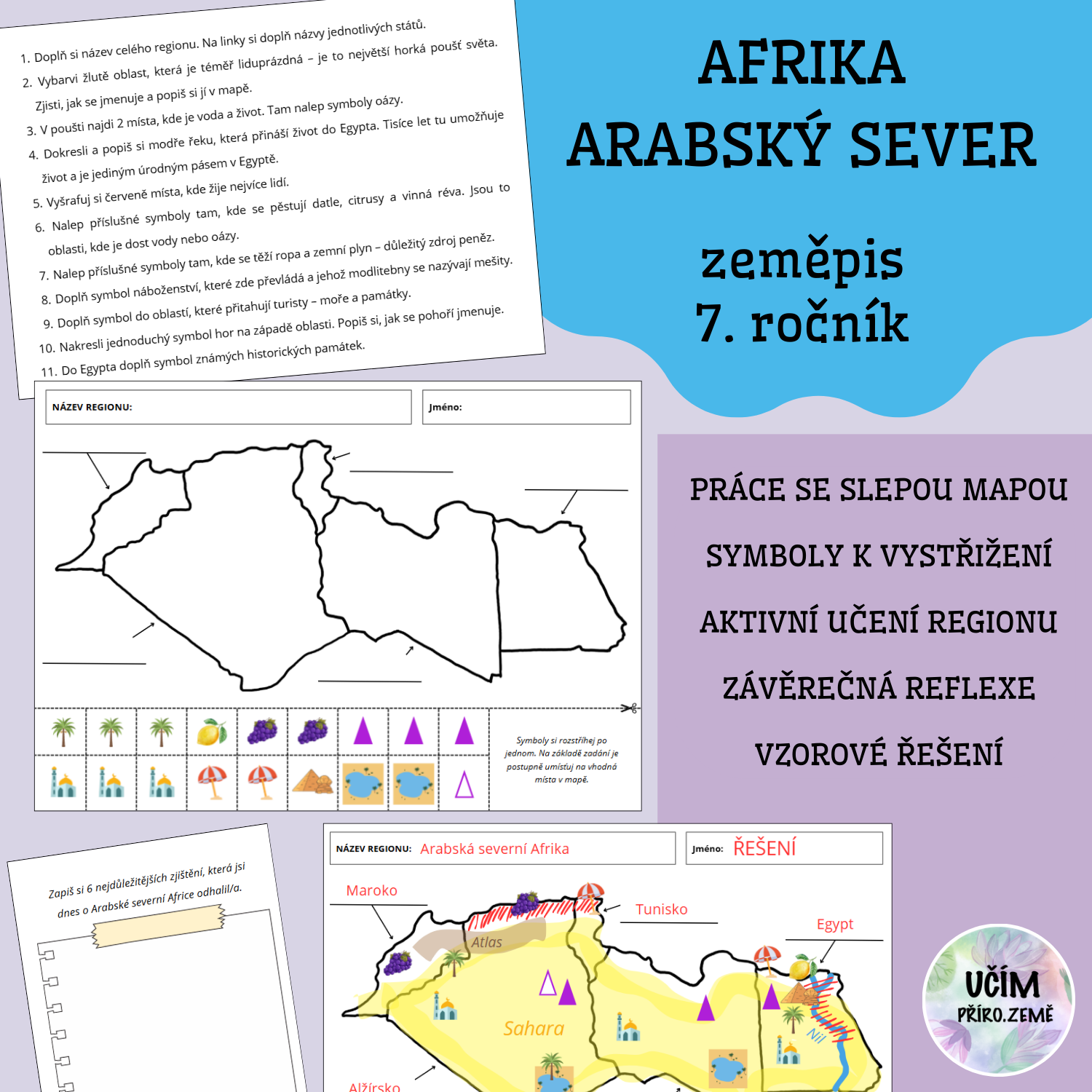 Materiál je určen pro 7. ročník ZŠ do hodin zeměpisu k upevnění tématu Arabská severní Afrika. Žáci pracují samostatně nebo ve dvojicích se zadáním a slepou mapou regionu, do které zakreslují geografické prvky, doplňují názvy států a pomocí symbolů označují typické znaky oblasti. Využít mohou atlas nebo učebnici.