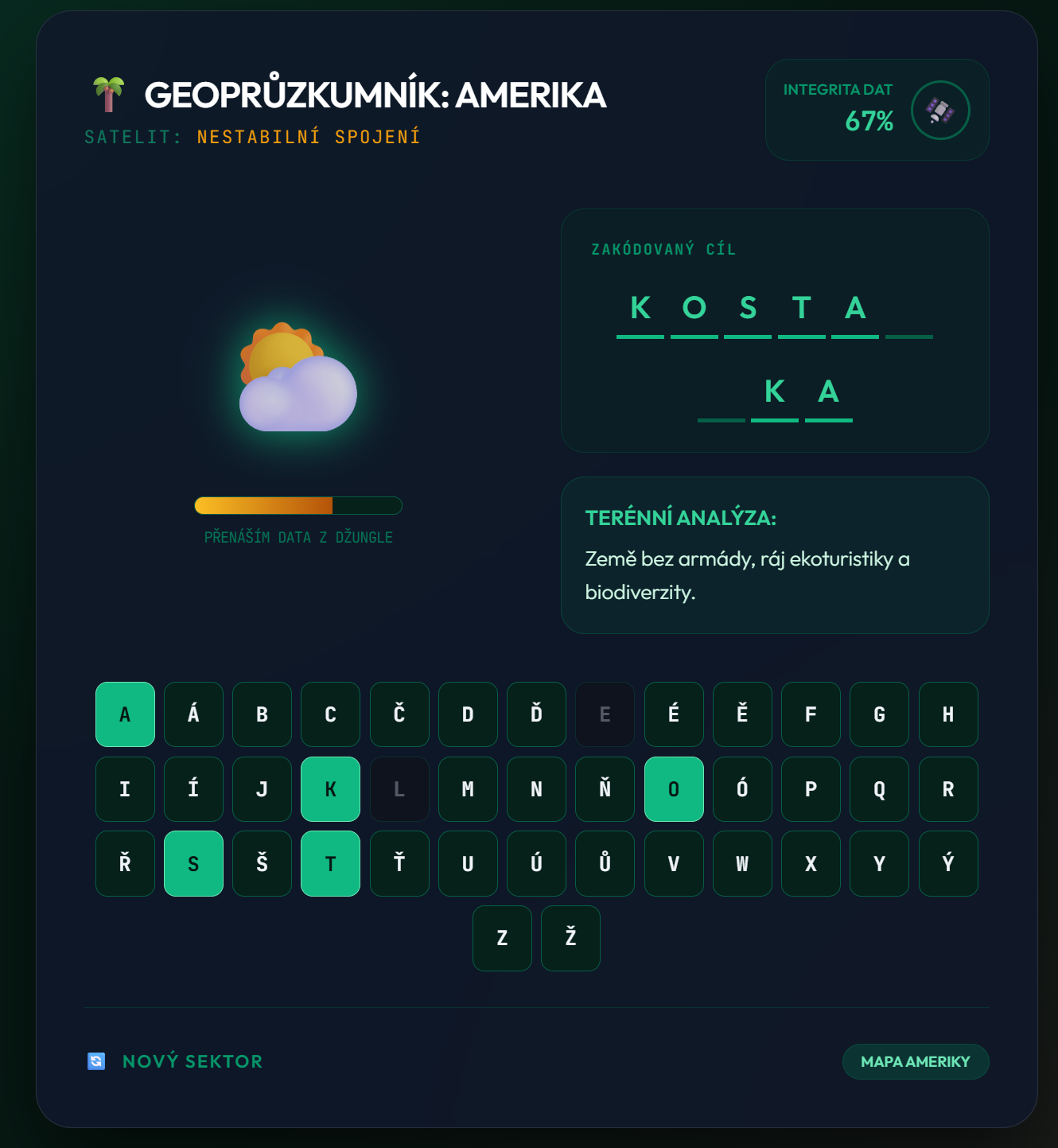 - Tematický design: Vizuální styl „Jungle Edition“ se zelenými tóny a ikonami tropické flóry pomáhá žákům k podvědomé fixaci regionu.