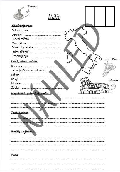 Materiál slouží jako pracovní list, do kterého si žáci mohou vyplňovat informace a bude jim sloužit jako zápis.